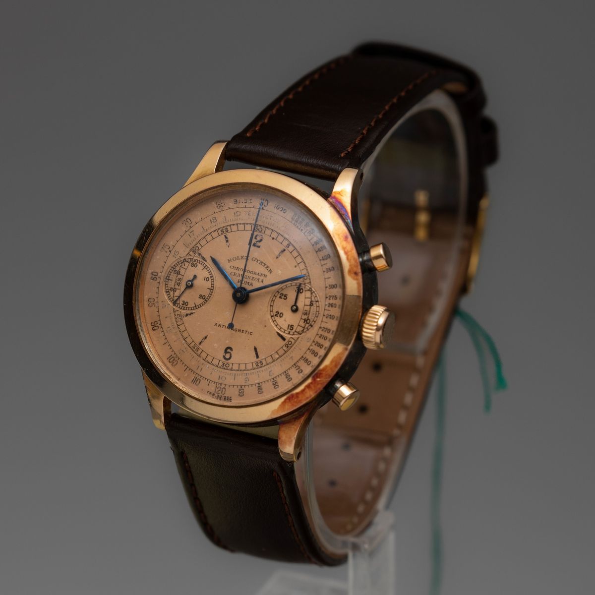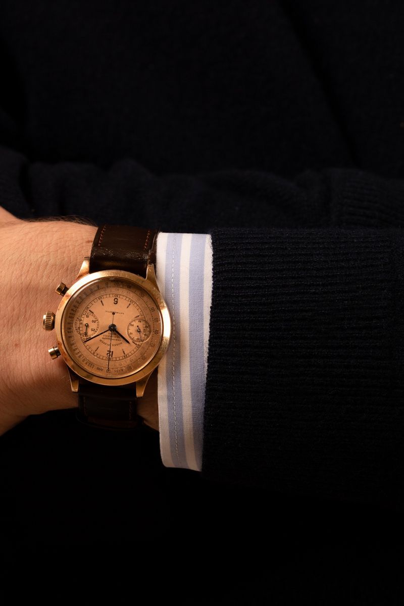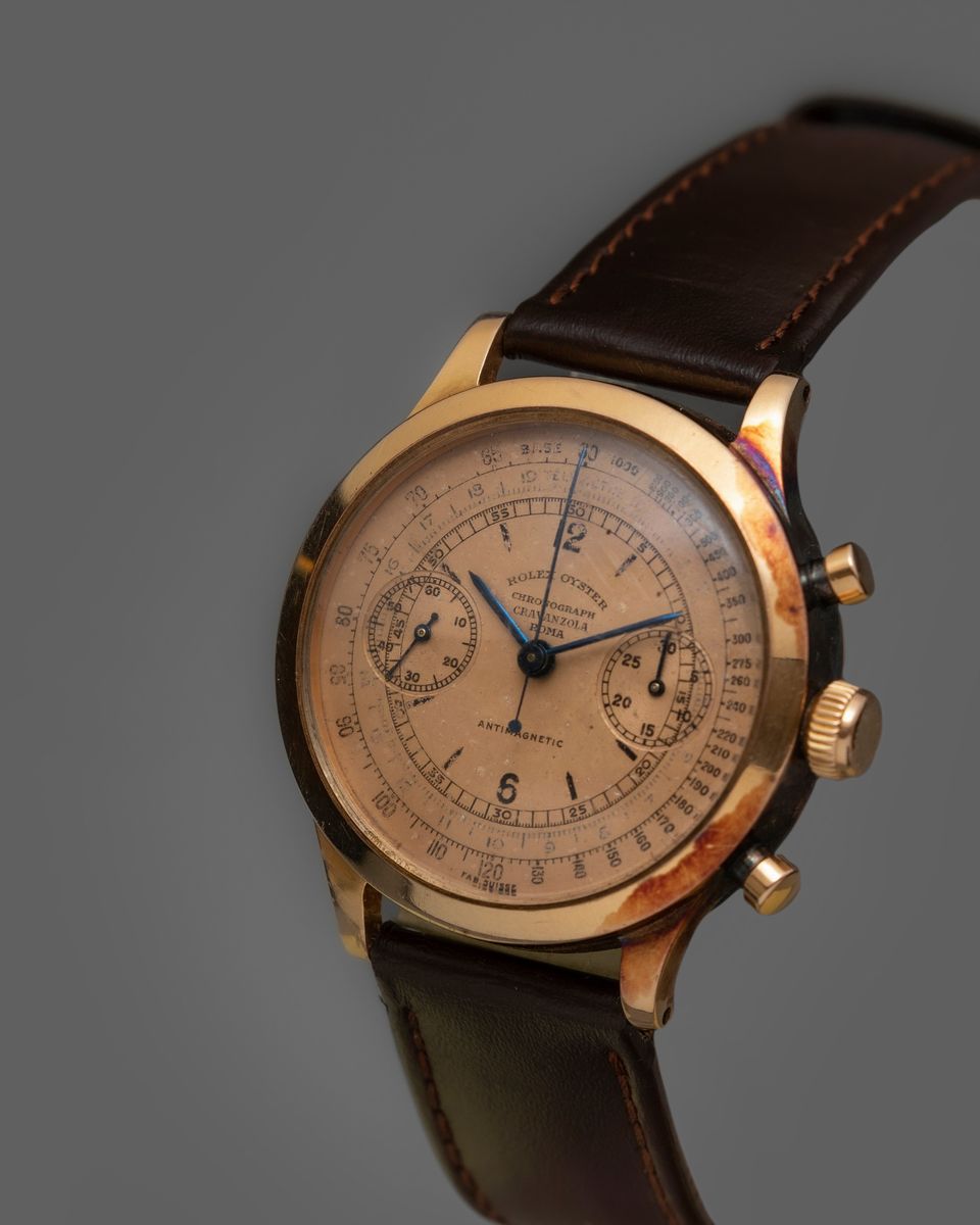 L'importanza del presente orologio risiede in numerosi aspetti. Innanzitutto quest'orologio appartiene alla prima serie di esemplari prodotti (40.xxx-50.xxx). In secondo luogo la cassa in ottimo stato di conservazione è in oro rosa, materiale meno diffuso ma molto più elegante e richiesto di acciaio e oro giallo. La configurazione dell'orologio inoltre è un altro elemento di spicco in quanto il quadrante rosa riprende lo stesso tono della cassa.
