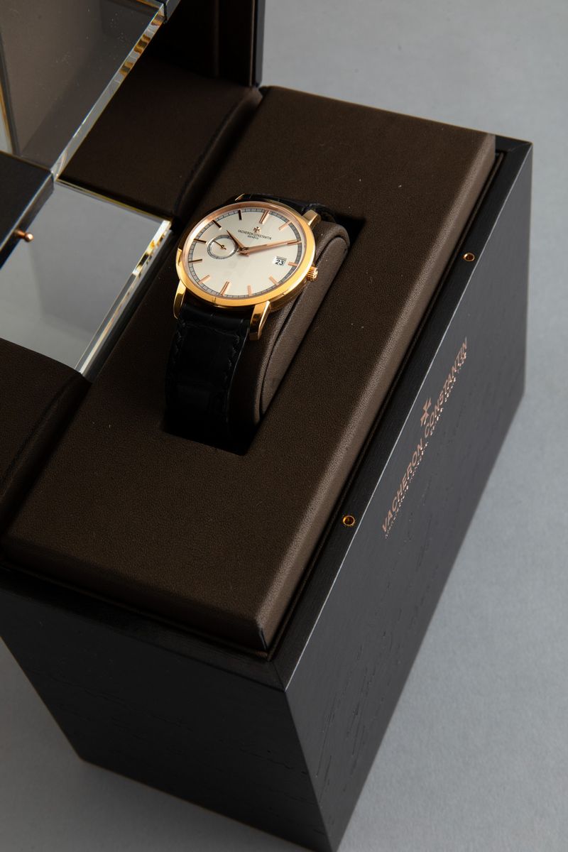 VACHERON & CONSTANTIN - Traditionelle, elegante orologio in oro rosa 18k con datario e piccoli secondi al nove, movimento automatico a vista. Chiusura deployante in oro rosa accompagnato da astuccio e garanzia originale