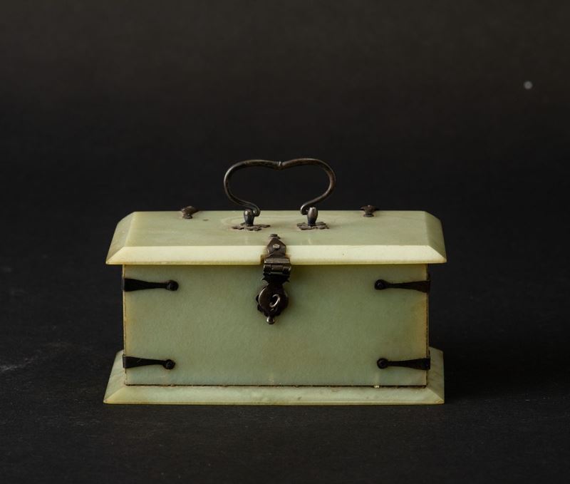 Cofanetto in giada Celadon e montatura in argento, Cina, Dinastia Qing, epoca Daoguang (1821-1850)