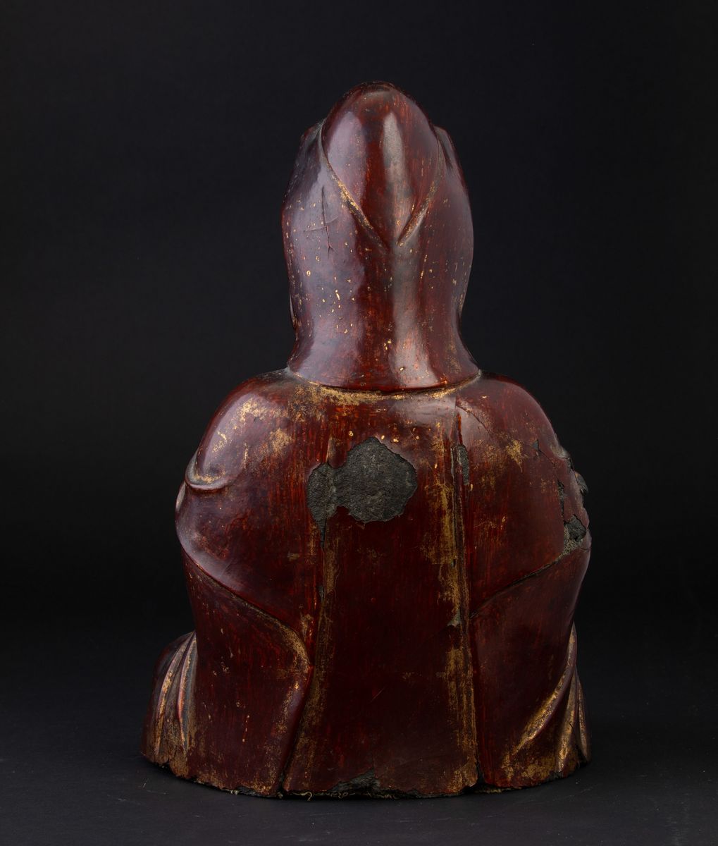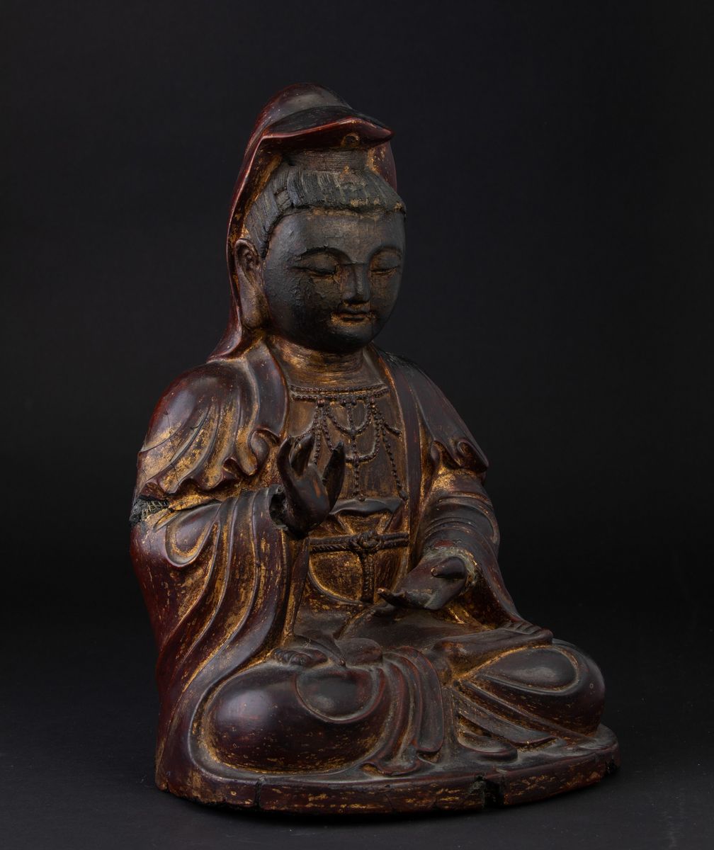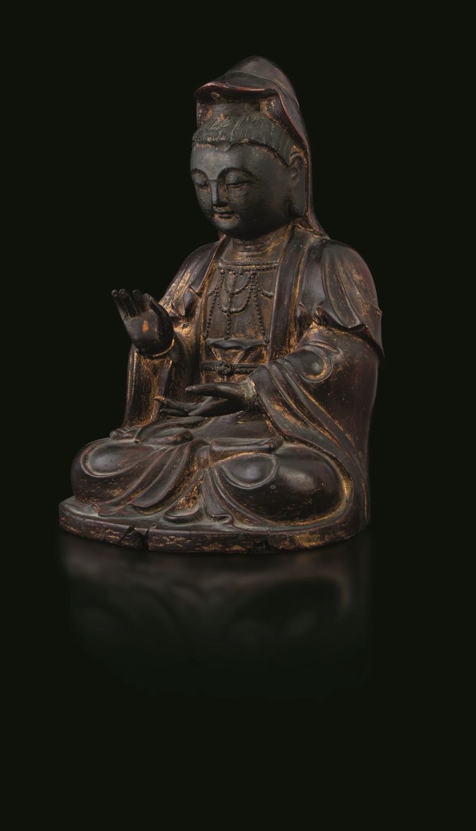 Figura di Buddha assiso scolpita in legno laccato, Cina, Dinastia Ming, XVII secolo