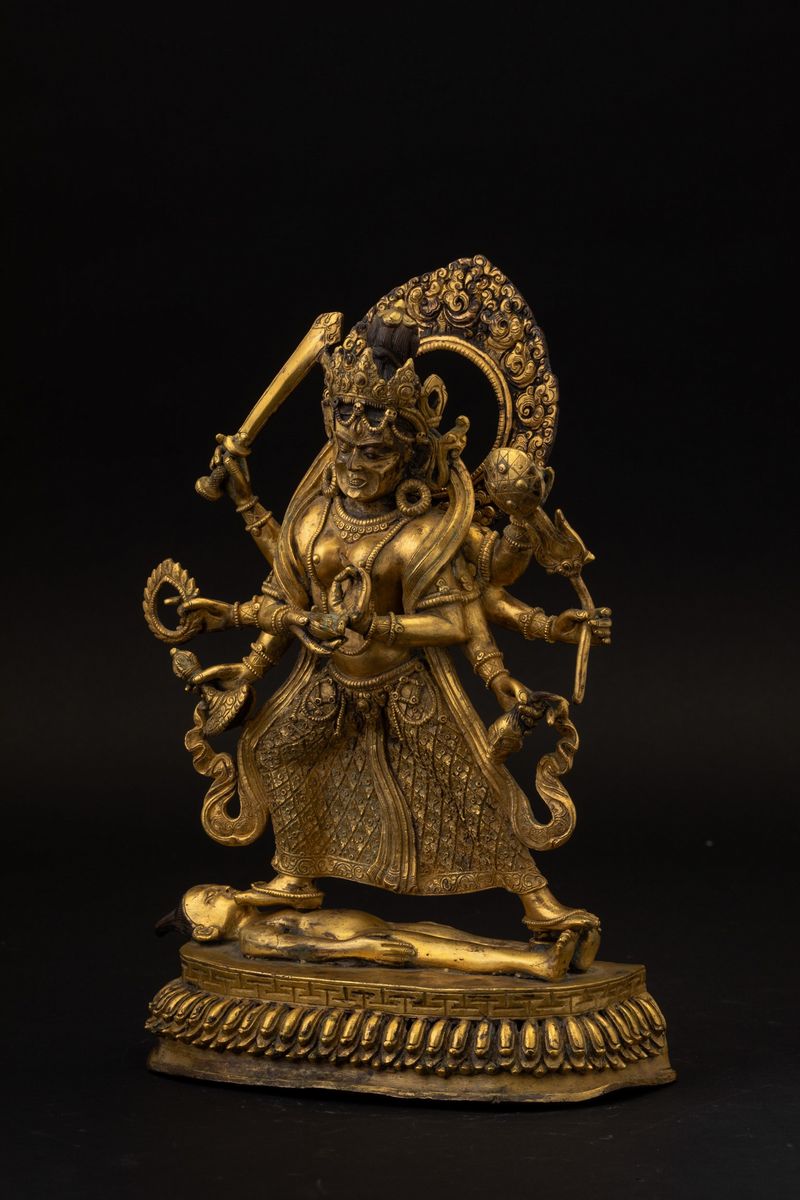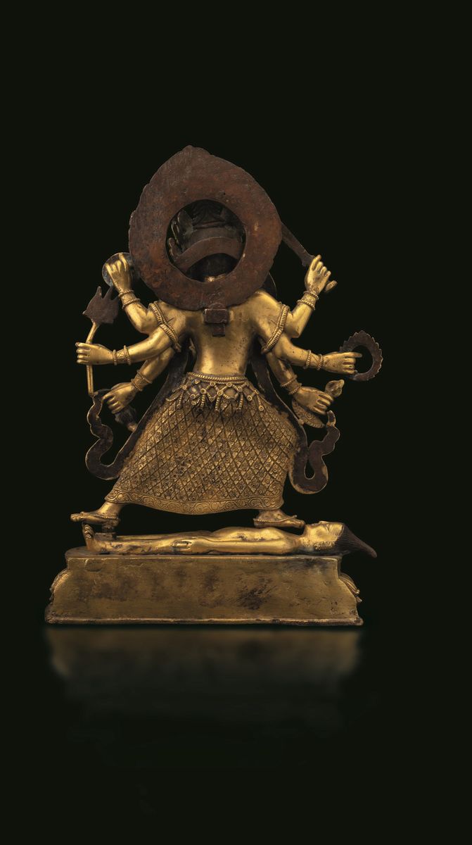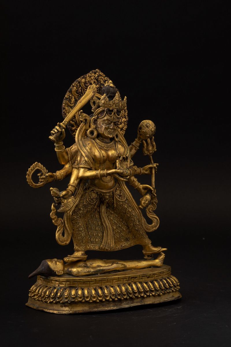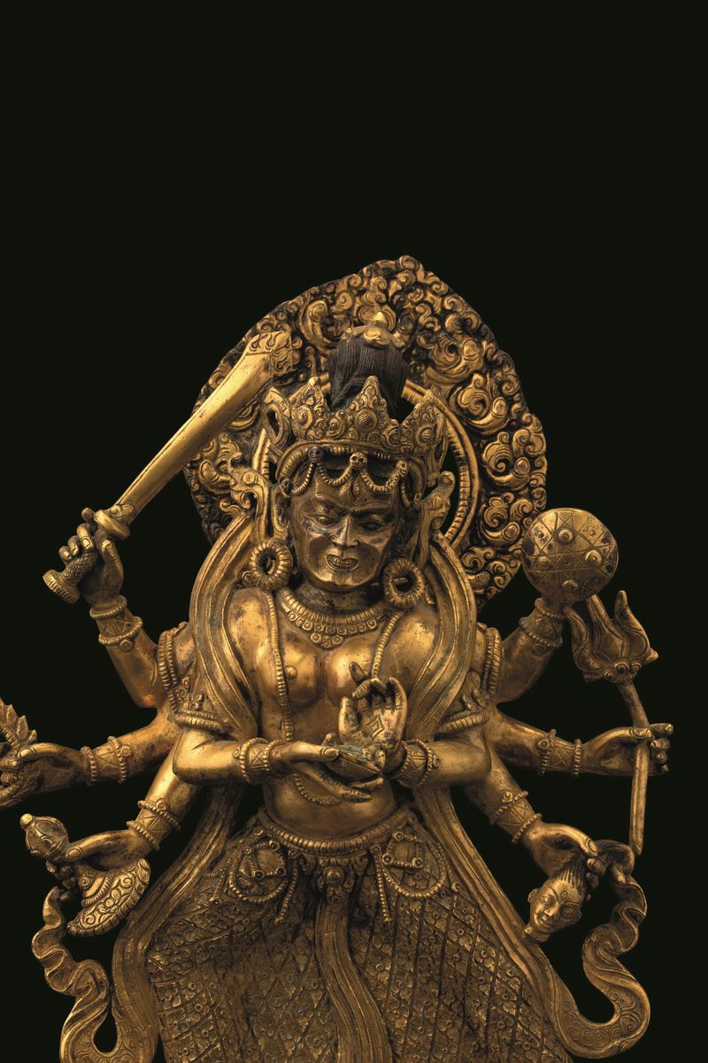 Figura di Durga stante in bronzo dorato, Tibet, XVIII secolo