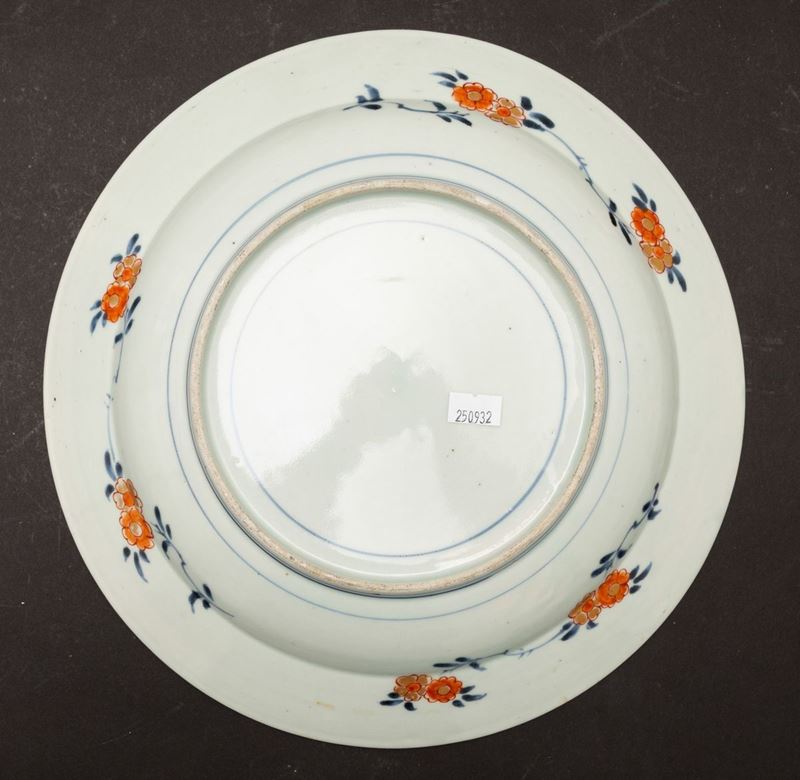 Piatto in porcellana Arita con soggetto naturalistico centrale e decori floreali entro riserve, Giappone, periodo Meiji (1868-1912)