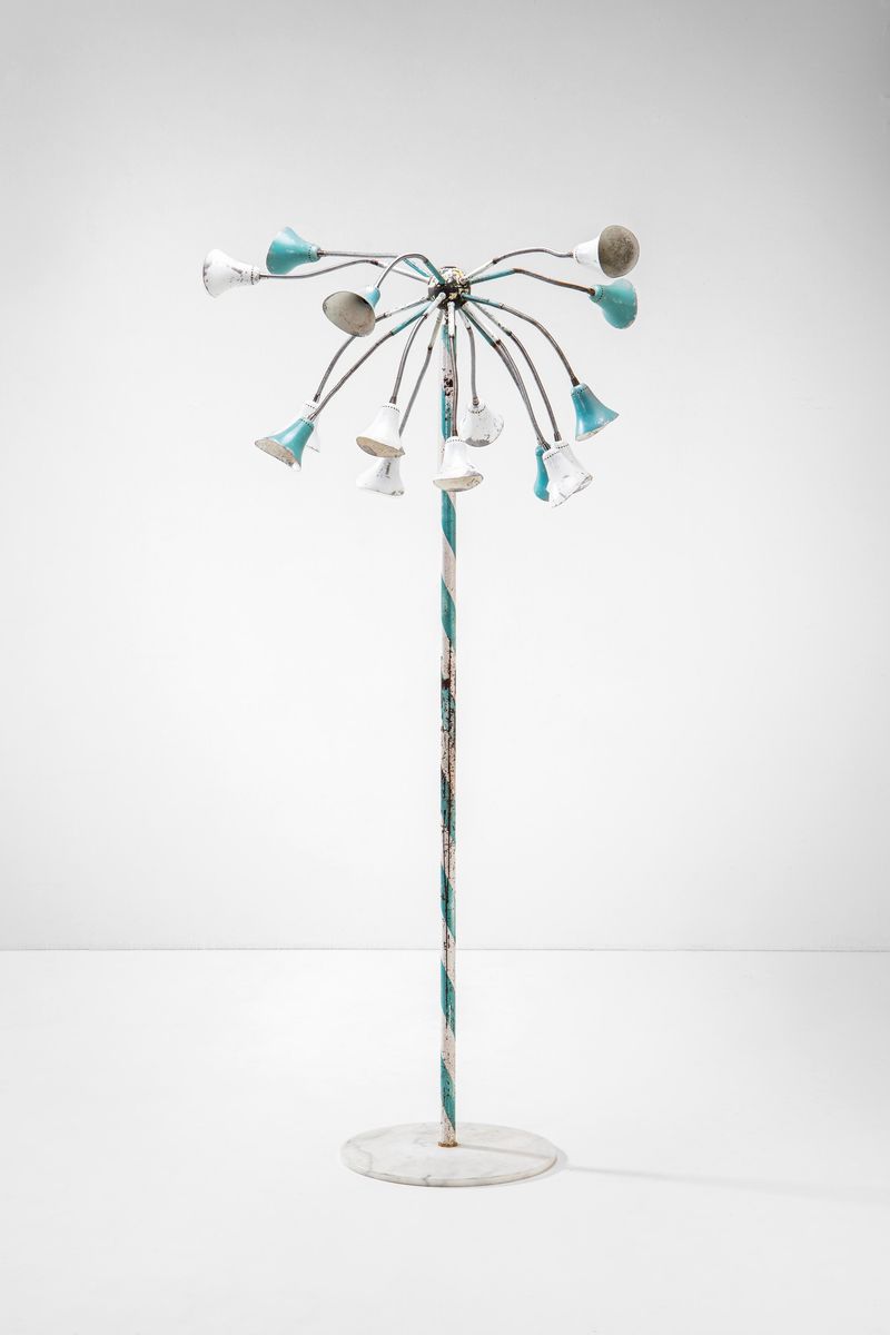 Rara lampada da terra a bracci orientabili.