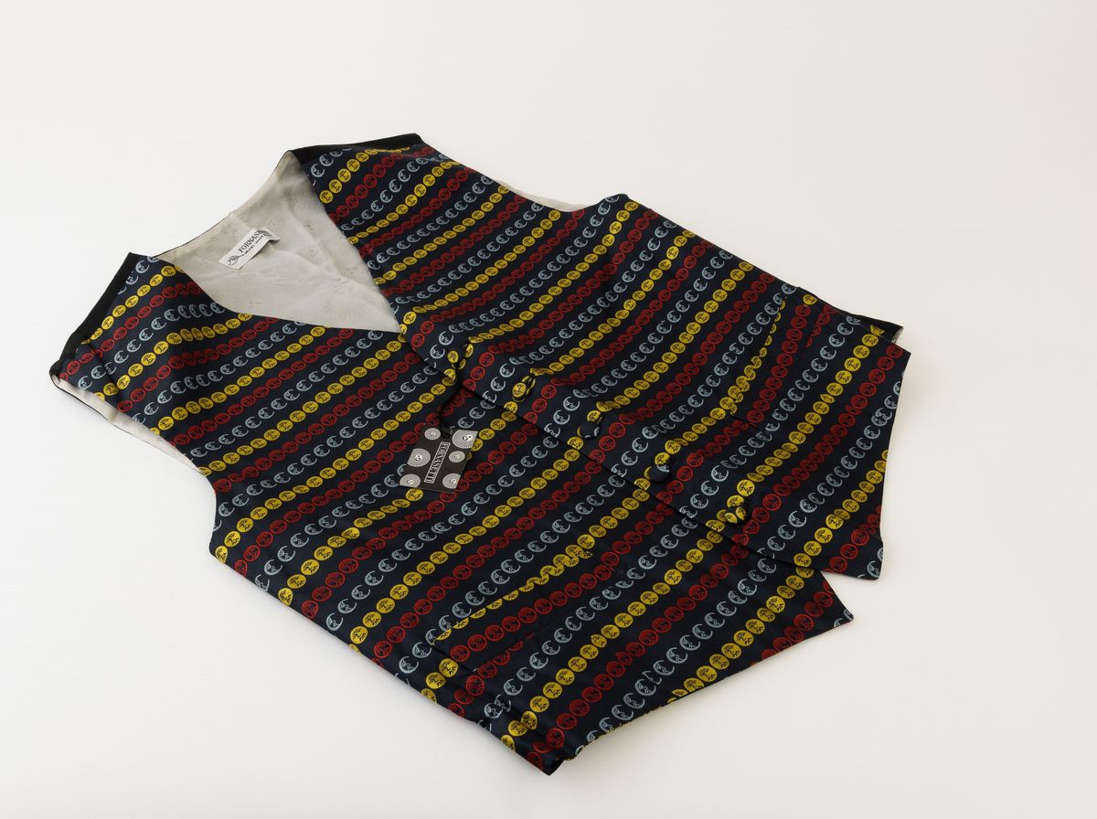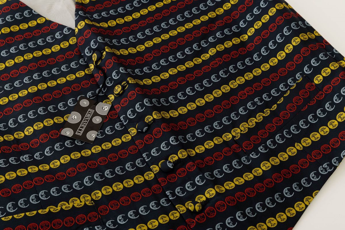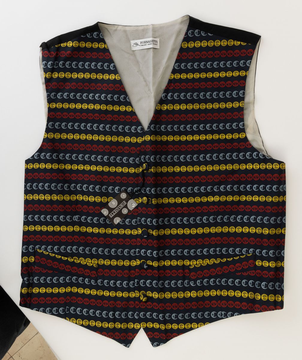 Gilet serie Sole e Luna a fondo blu/nero. Taglia M.