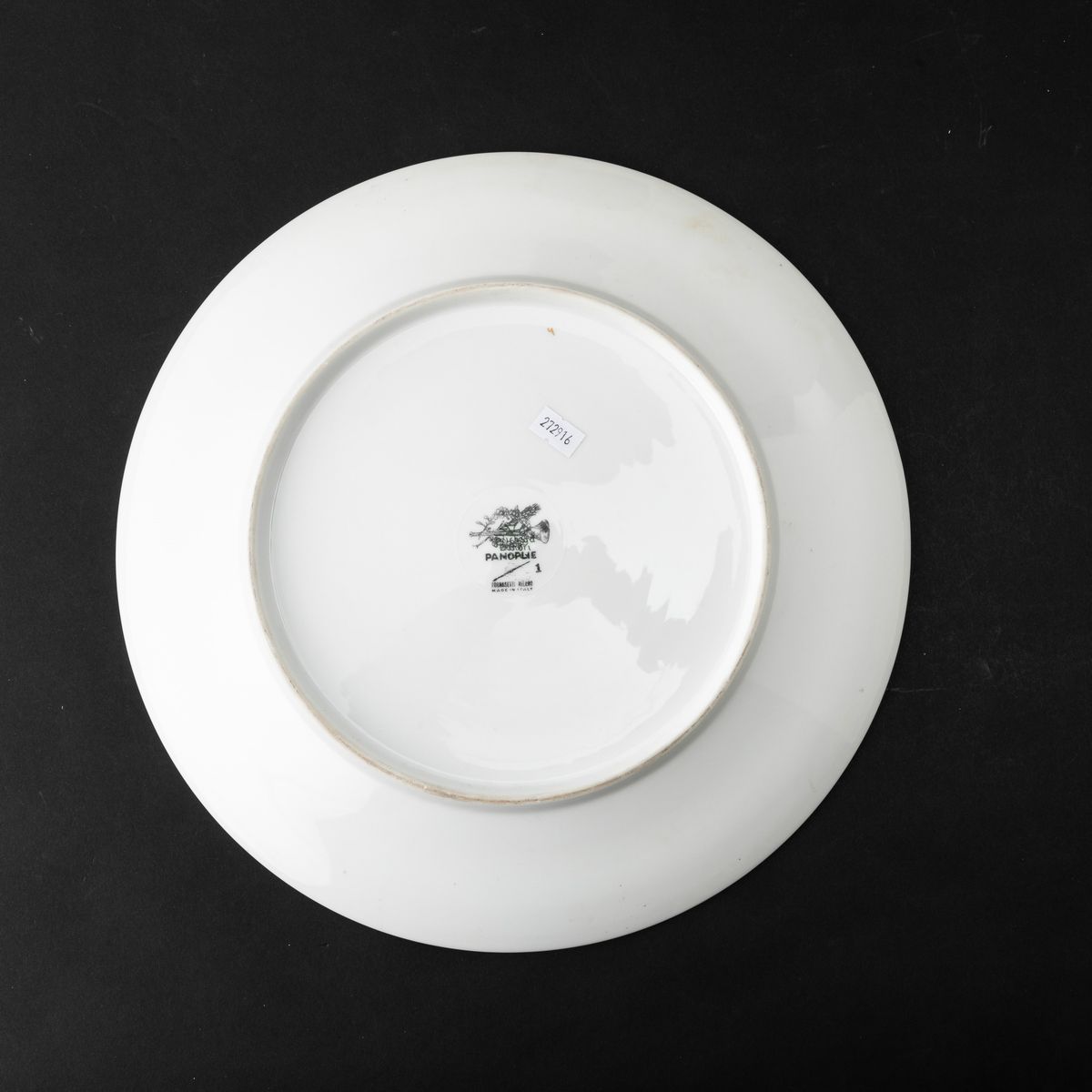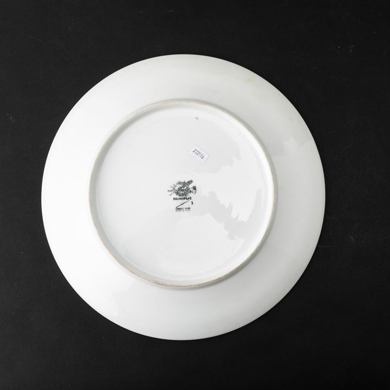 Grande piatto serie Panoplie in porcellana con decoro serigrafato su fondo oro.