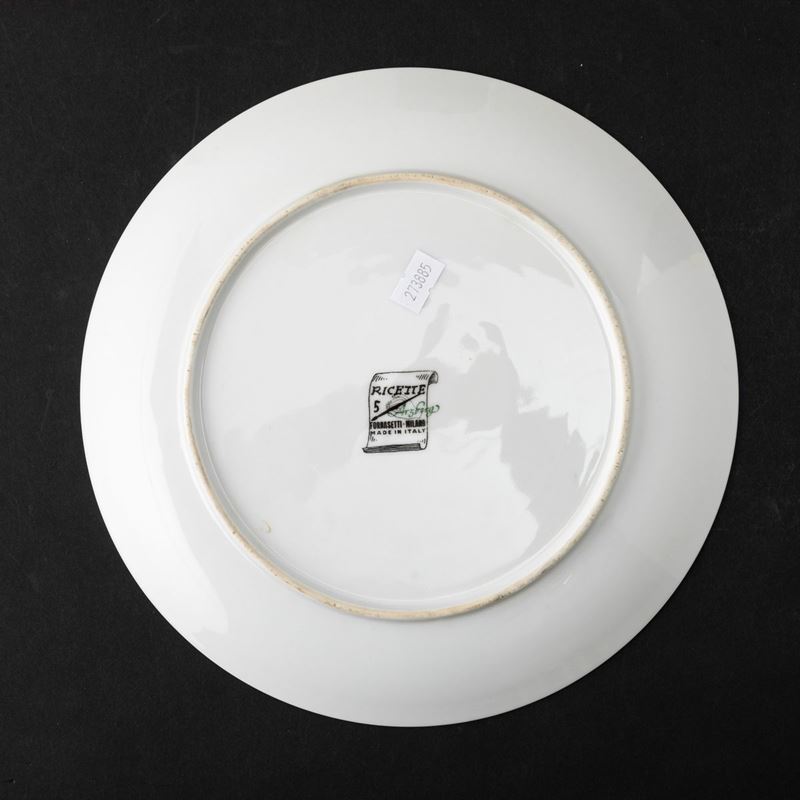 Piatto serie Ricette in porcellana con decoro serigrafato policromo.