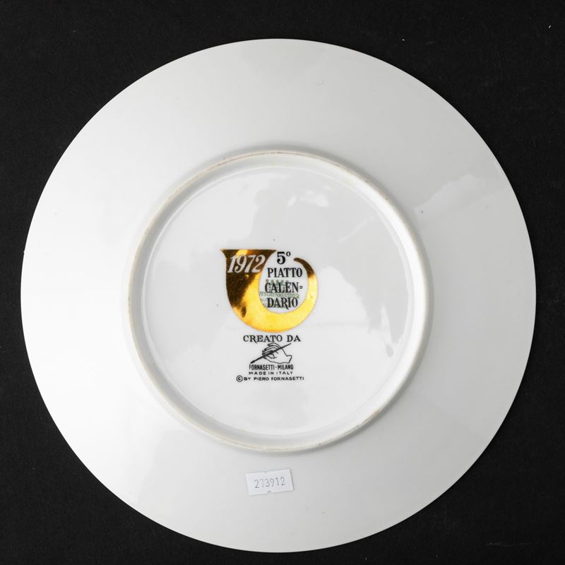 Piatto serie Calendario in porcellana con decoro serigrafato e oro.