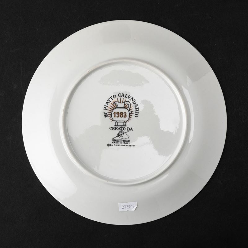 Piatto serie Calendario in porcellana con decoro serigrafato e oro.