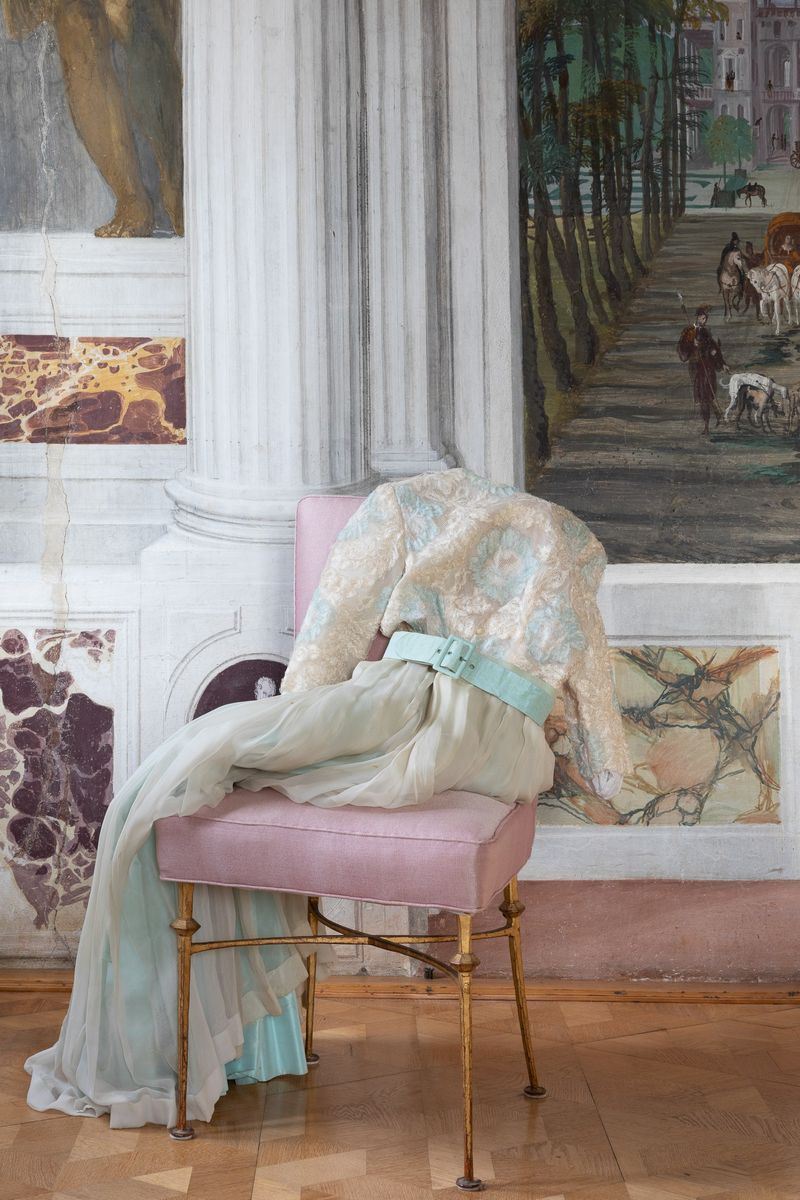 Abito da sera, modello Pierre Balmain, realizzato dalla sartoria Giunta Milano, anni '50
