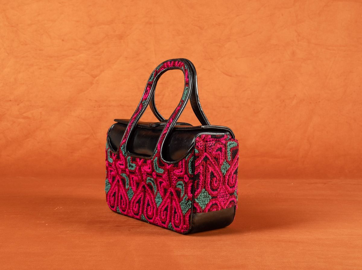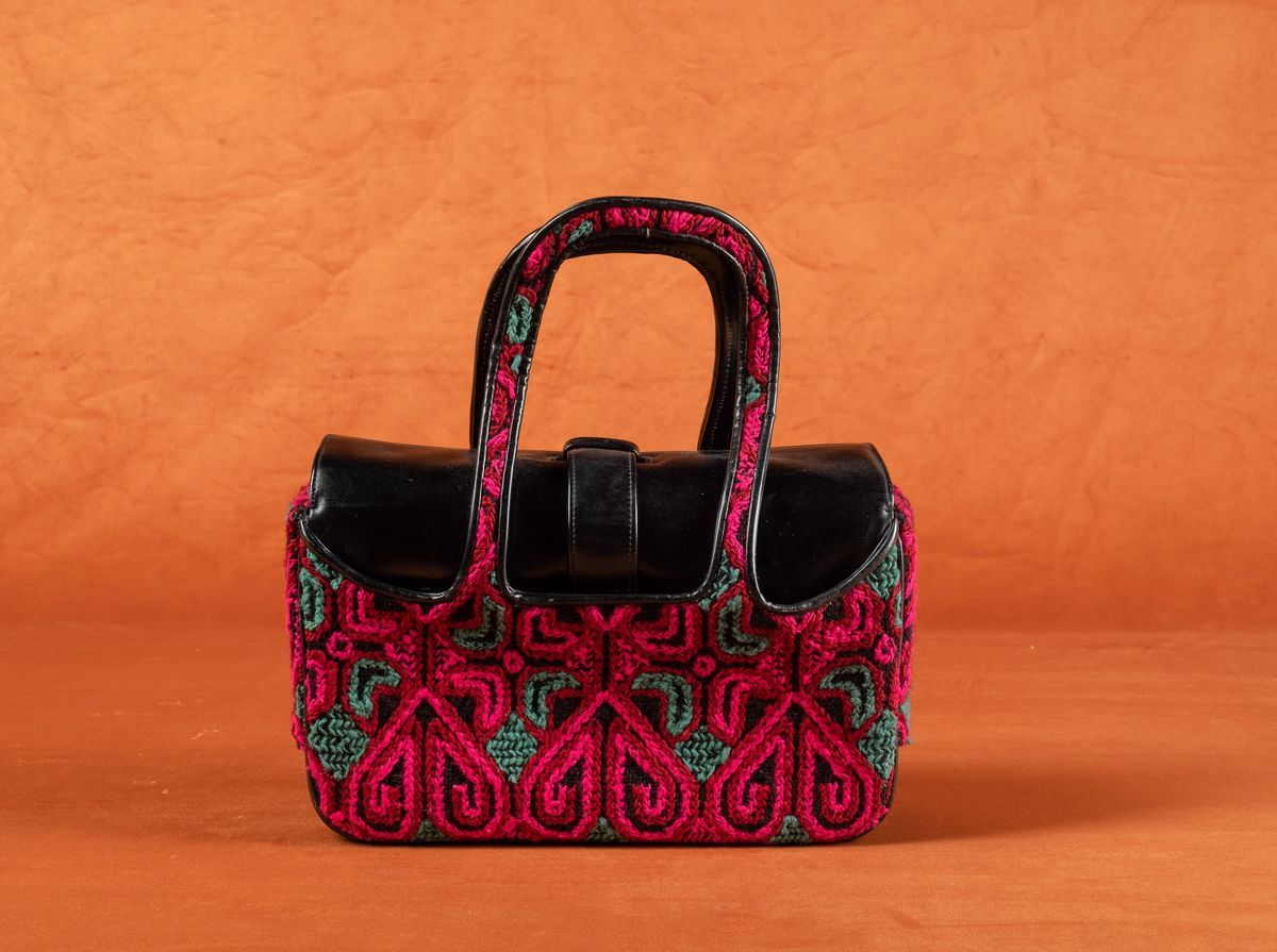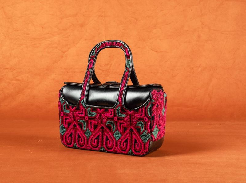 Borsa in pelle e tela ricamata, Roberta di Camerino
