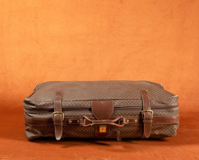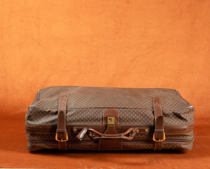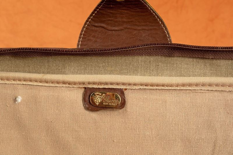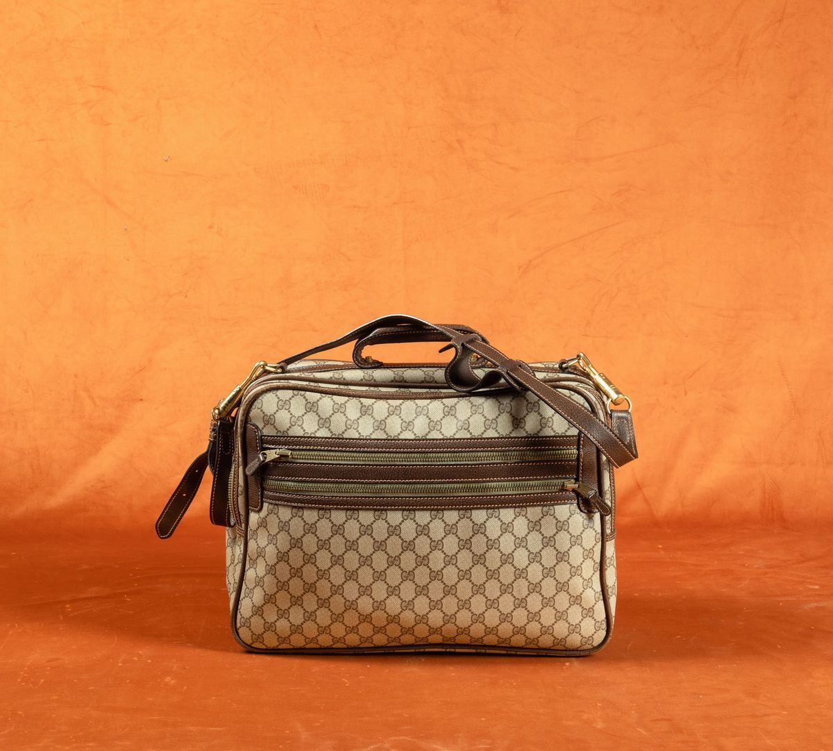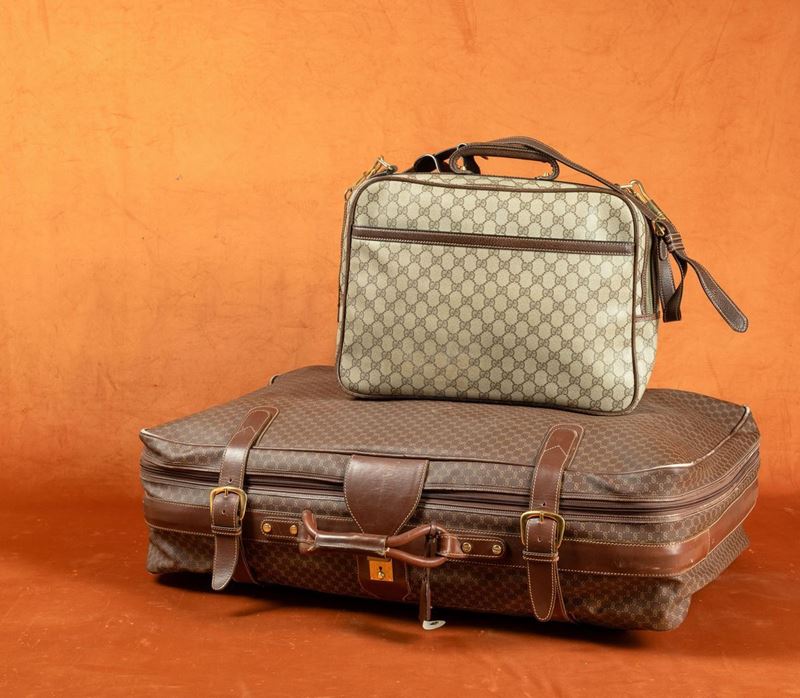Valigia in tessuto stampato GG quadro e borsa in tessuto Original GG con rifiniture in cuoio.