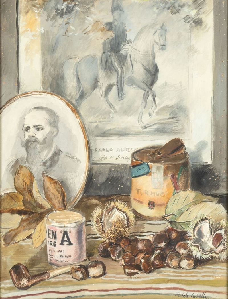 Natura morta con ritratto di Camillo Benso conte di Cavour 1944