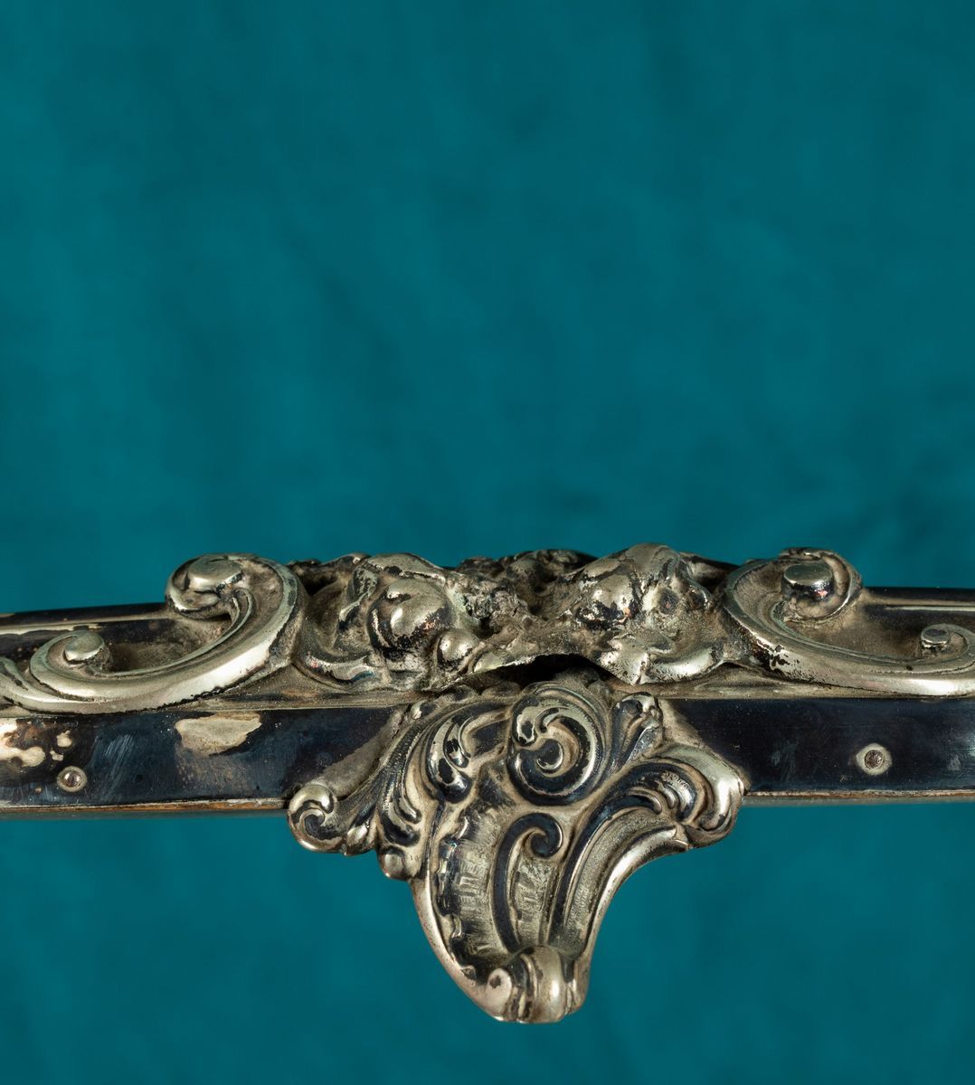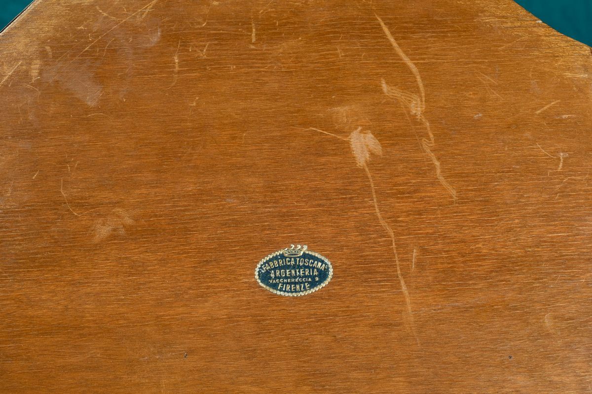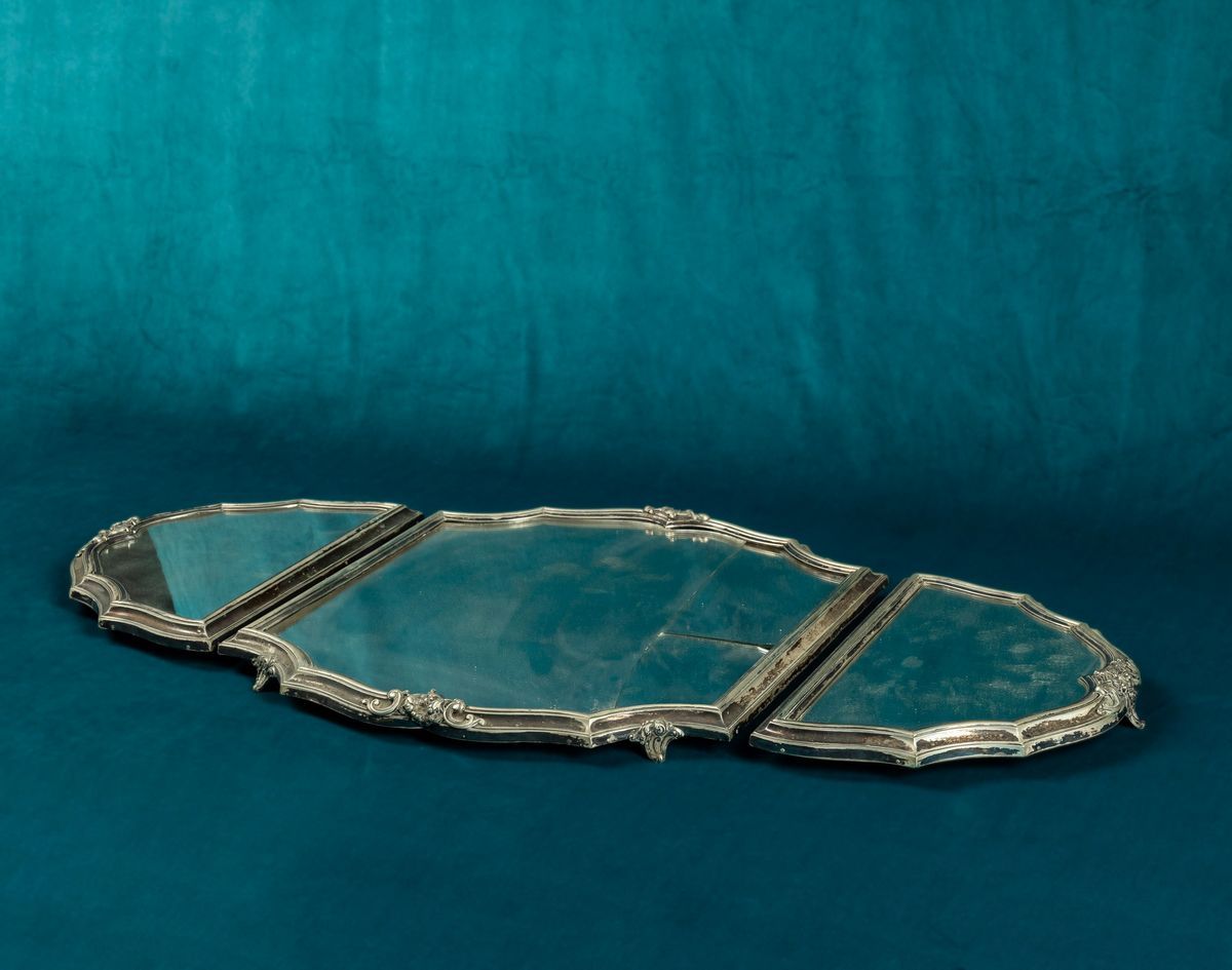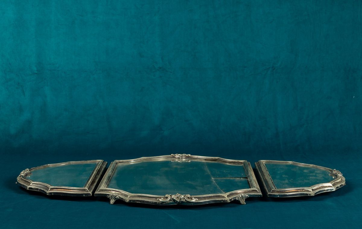 Presentoire tripartito con montatura in argento e fondo a specchio. Manifattura italiana del XX secolo.