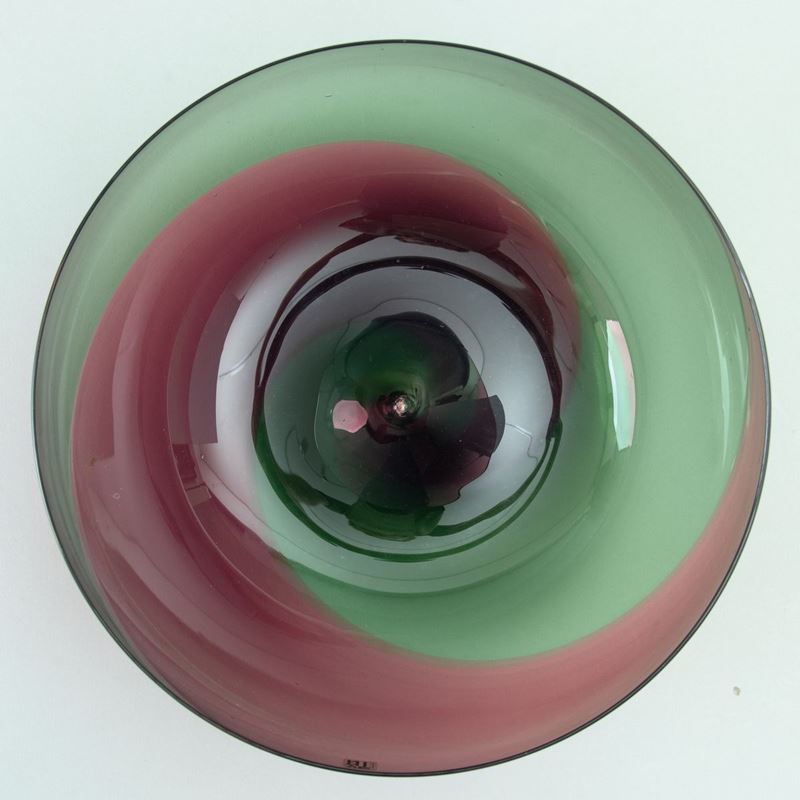 Coppa serie Coreani in vetro soffiato con decoro di fasce ritorte viola e verde.