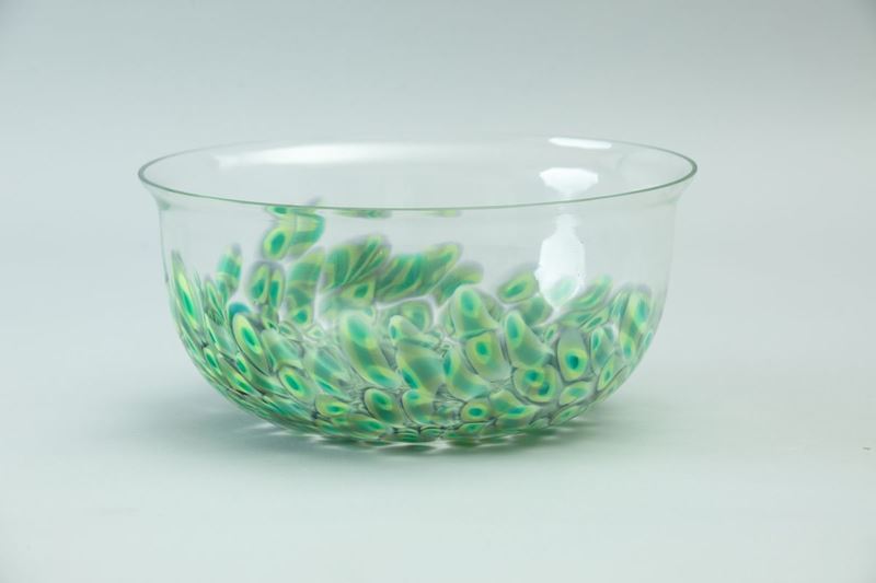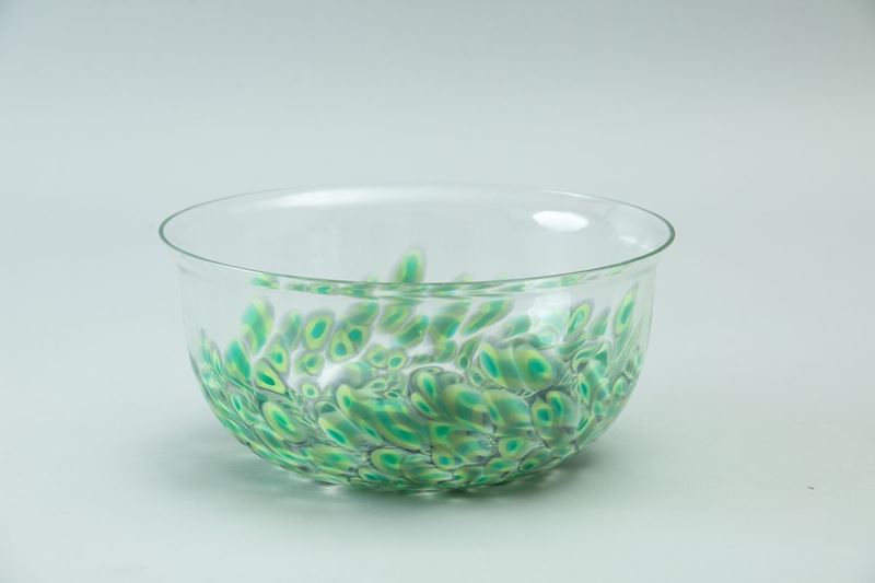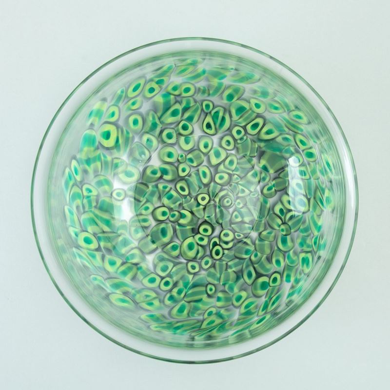 Coppa serie Neverrino in vetro soffiato trasparente con decoro di murrine.