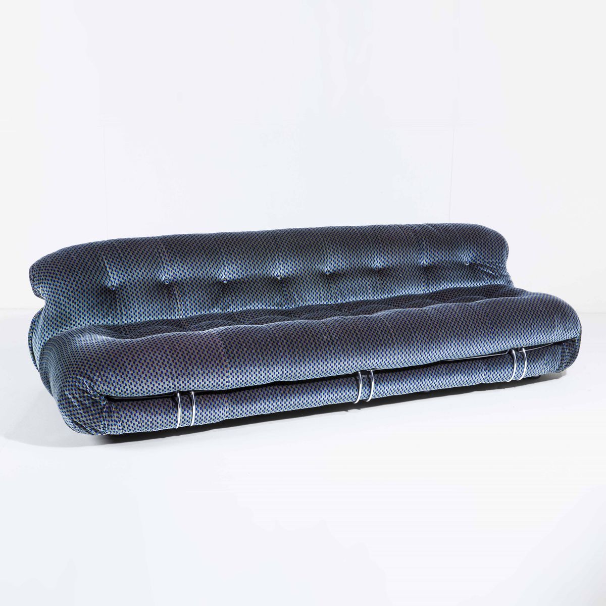Divano mod. Soriana con struttura in tubolare cromato e rivestimenti in tessuto perfetto recentemente rinnovato.