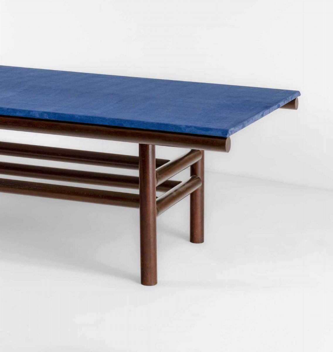 Tavolo mod. Gritti con struttura in legno e piano con rivestimento in panno.