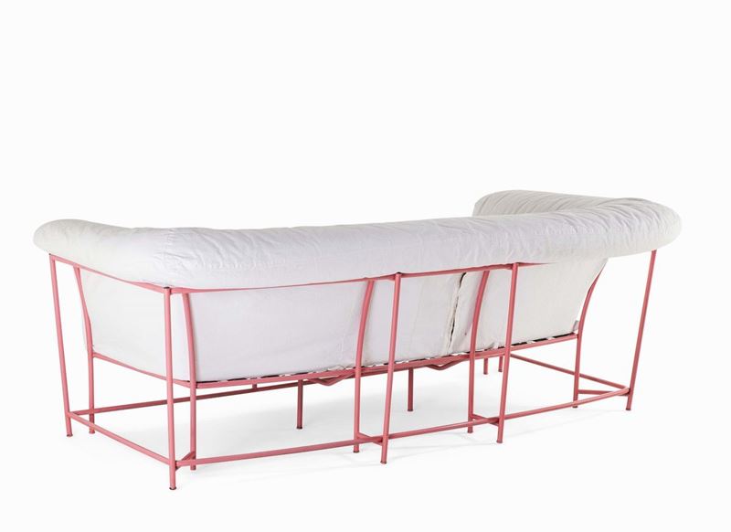 Divano mod. Siglo 20 con struttura in tubolare metallico laccato e imbottitura autoportante e rivestimento in tessuto.