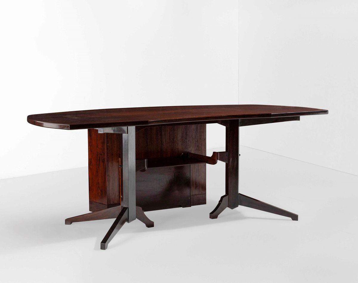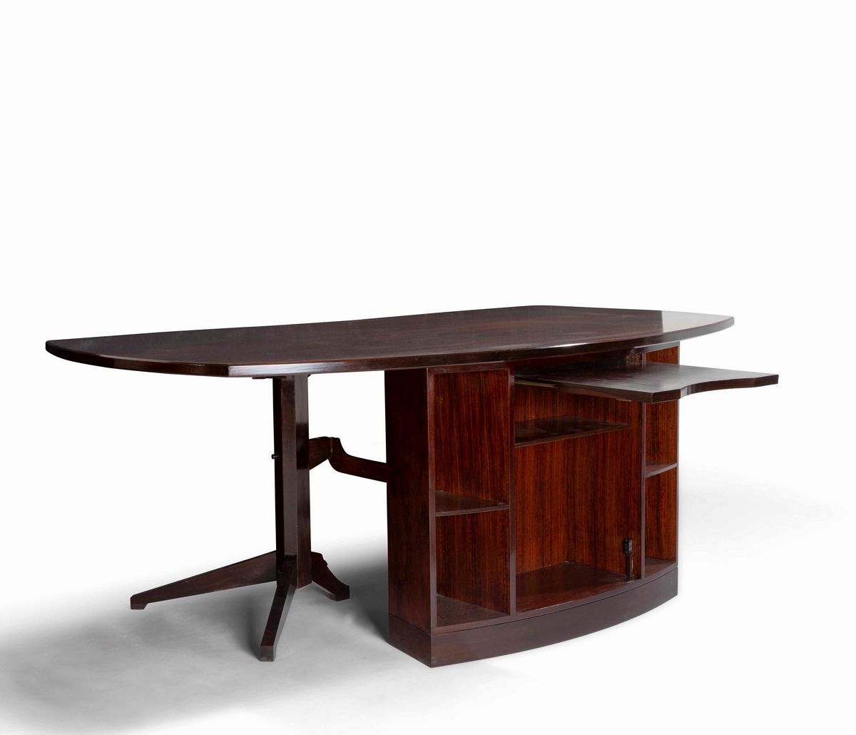 Grande scrivania e mobile contenitore dotato di piano estraibile.