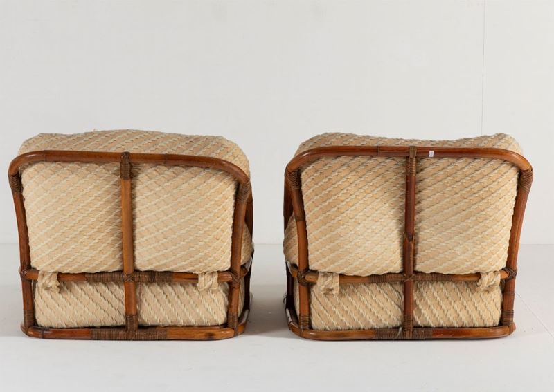 Coppia di poltrone mod. 698 con struttura in giunco.