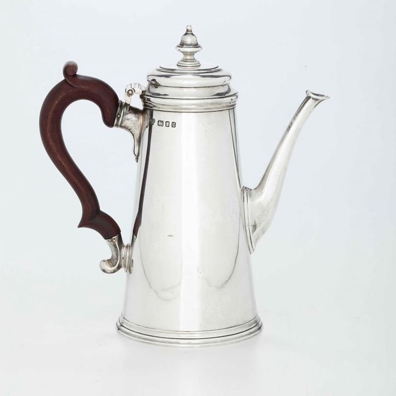 Caffettiera in argento sterling. Inghilterra, bollo della città di Londra per l'anno 1971 Argentiere J.L.C.