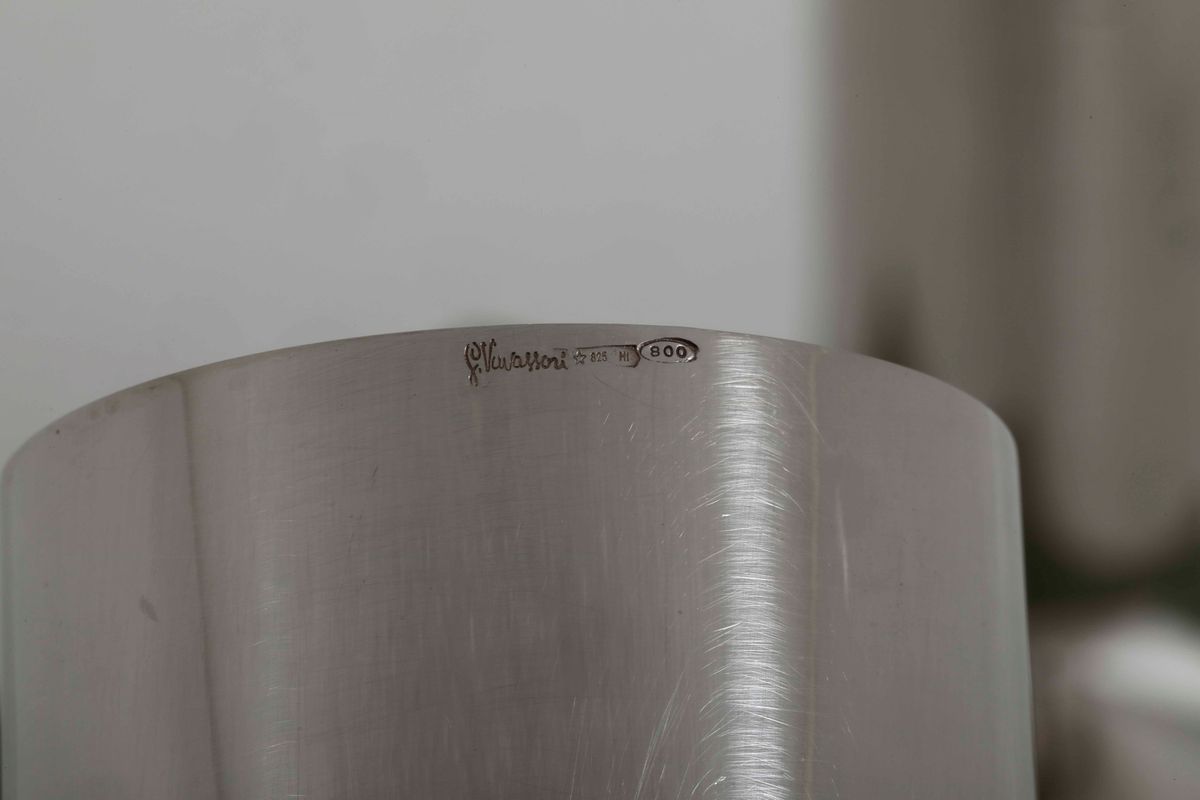 Coppia di vasi in argento entro custodia. Argenteria milanese XX secolo. Argentiere Vavassori e Pirovano