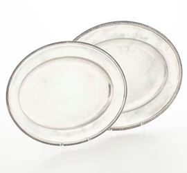 Due vassoi ovali in argento. Argenteria milanese del XX secolo. Argentiere Ilario Pradella per Zendrini, Torino