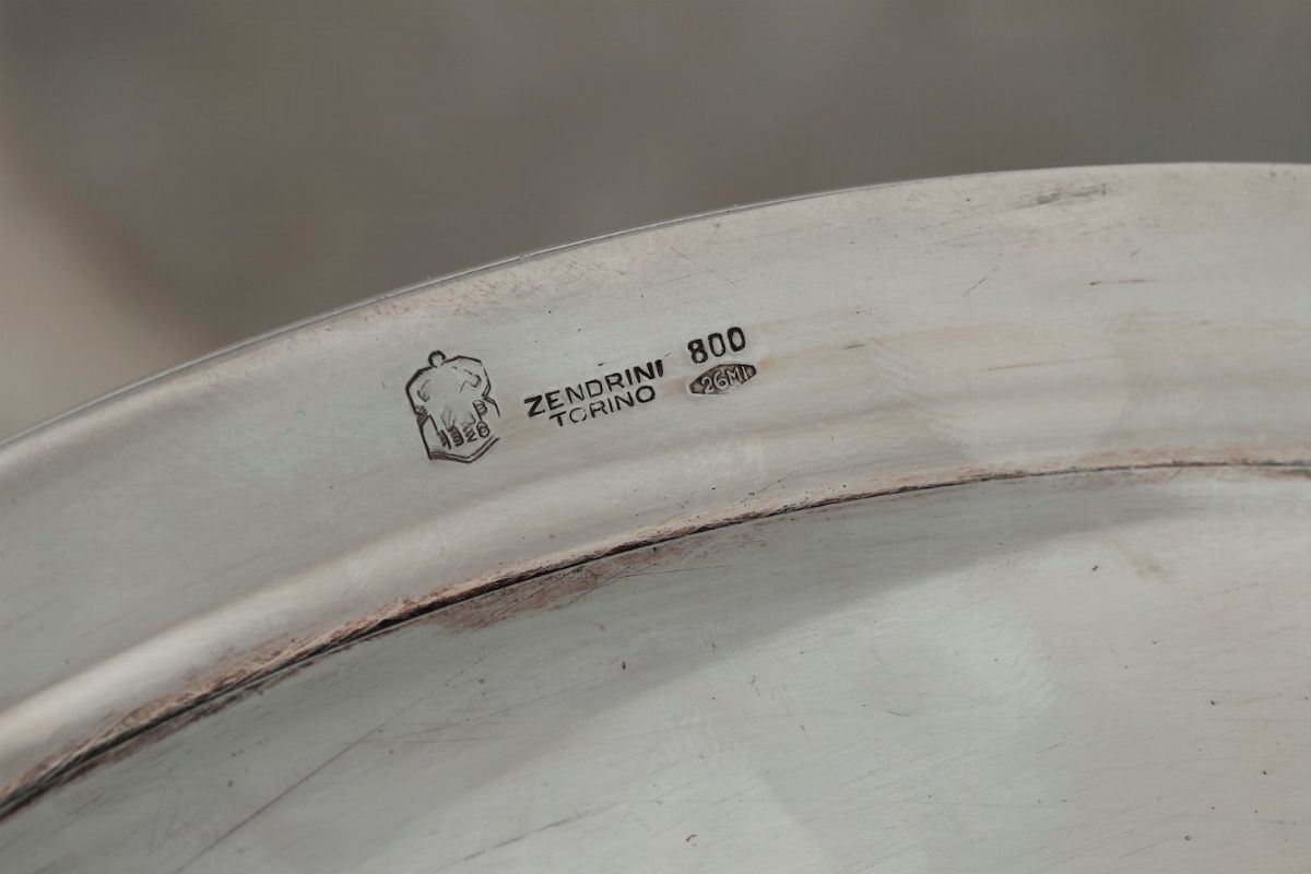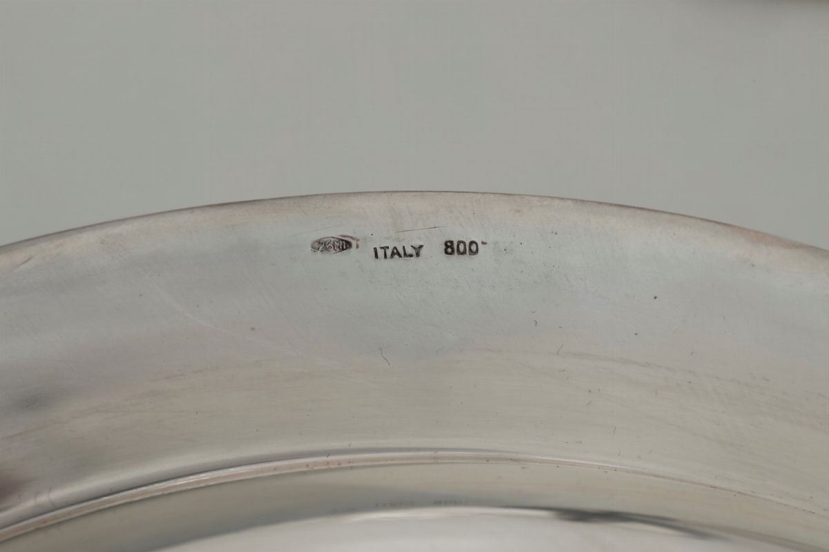 Legumiera in argento con sottopiatto. Argenteria milanese del XX secolo. Argentiere Ilario Pradella per Zendrini, Torino
