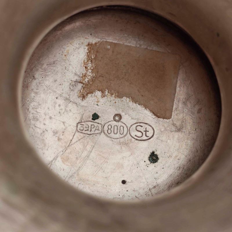 Vaso in argento fuso e sbalzato. Argenteria siciliana del XX secolo. Argentiere Eugenio Stancampiano, Palermo