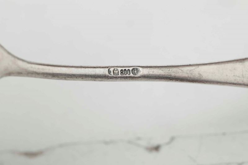 Zuccheriera in argento, XIX secolo, con sei cucchiaini, XX secolo