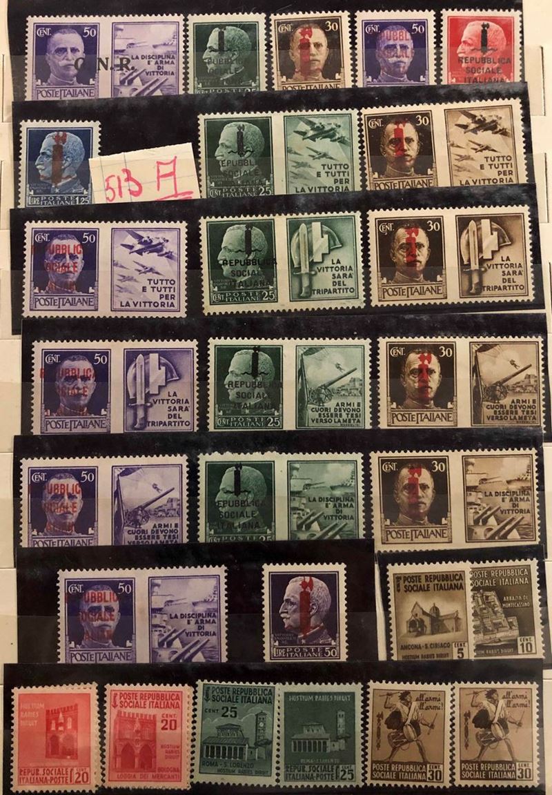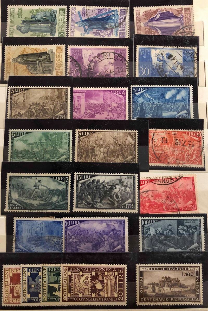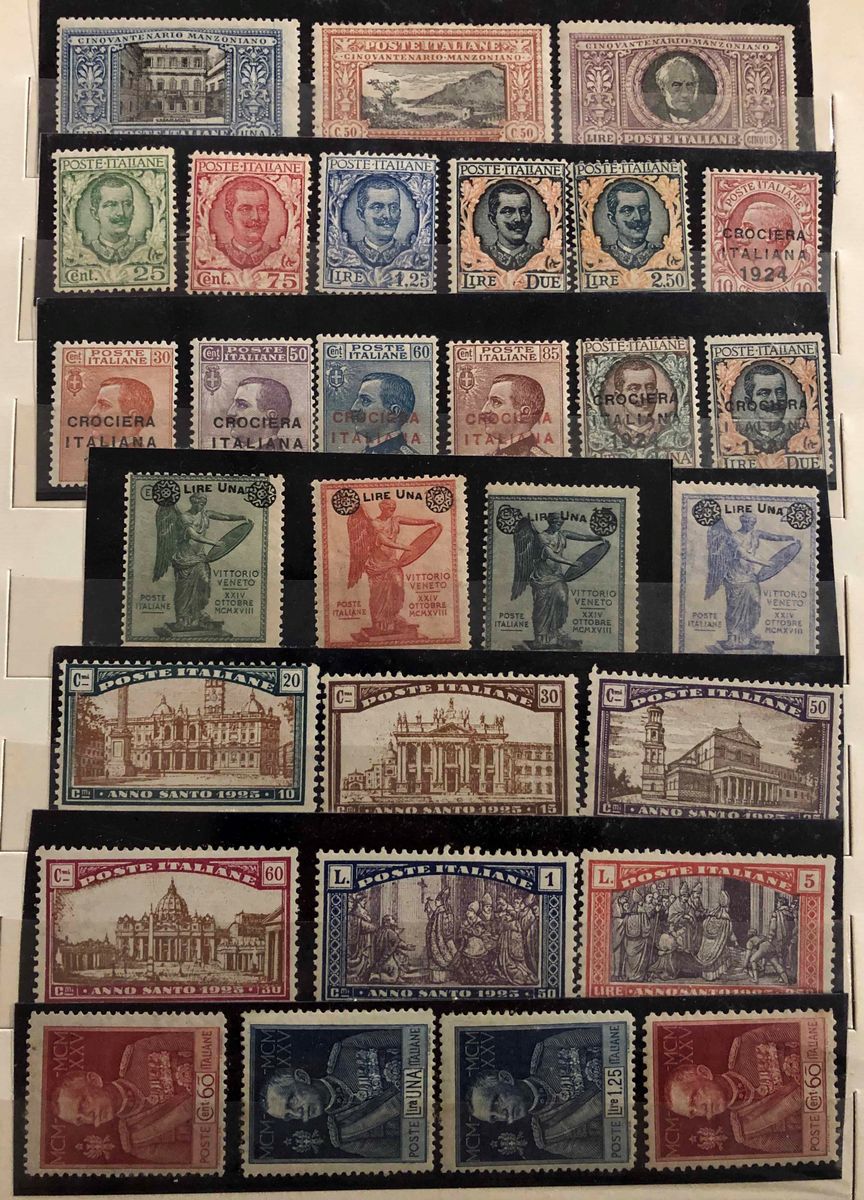 11 classificatori che furono conservati in ambiente umido. Molti con gomma gialla o bicolore, ma notate buone presenze come "Coroncina" di Regno o "Tobia" e altri di P.A. di Vaticano. Alto valore di catalogo. Inoltre volume a taschine con timbri meccanici e pubblicitari su frammenti. Da esaminare.