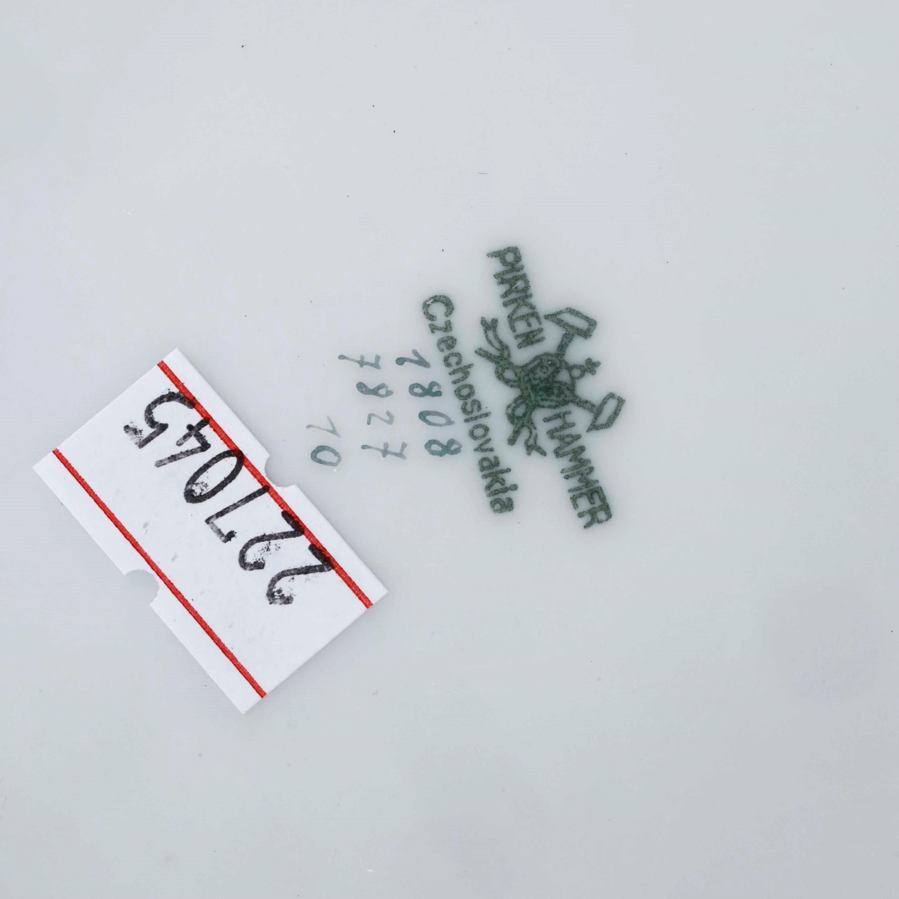 Porcellana. Marca: "Pirken Hammer Czechoslovakia" in verde con corona e martelli incrociati.