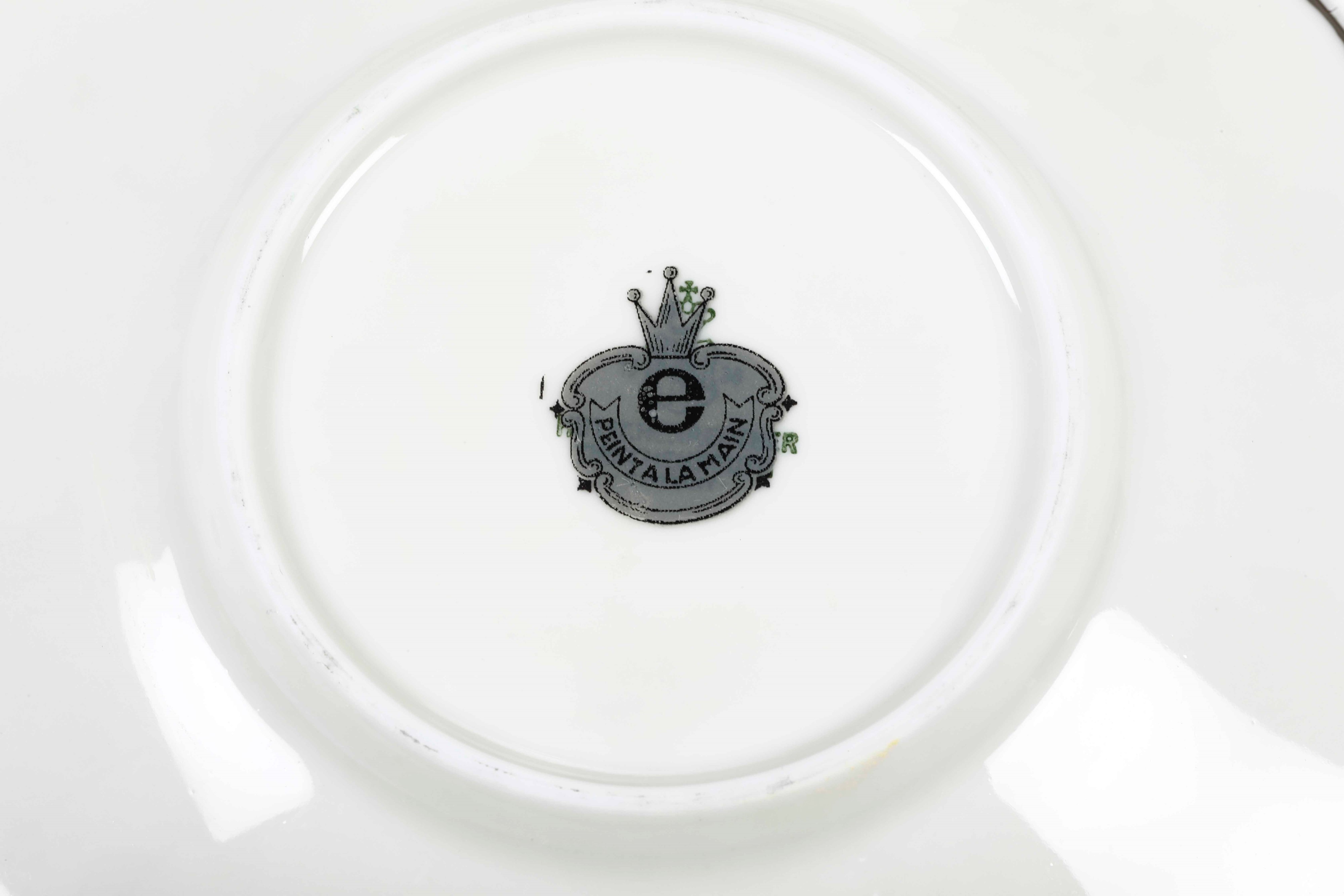 Porcellana decorata a mano ne smaltata color argento. Marca: simbolo grafico della manifattura in verde (non visibile) ricoperto da "E" "Peint a la main" con corona. Conservazione: qualche piccolo salto di smalto