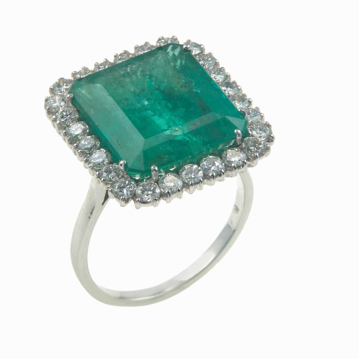 Anello con smeraldo Colombia di ct 9.70 circa e diamanti a contorno