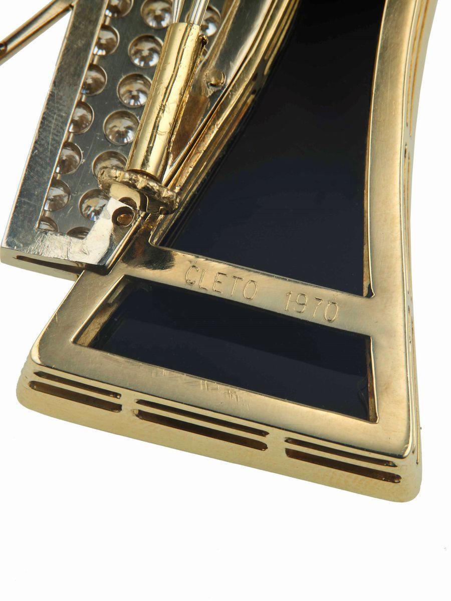 Cleto Munari. Spilla "fuochi d'artificio" con diamanti taglio brillante ed onice
