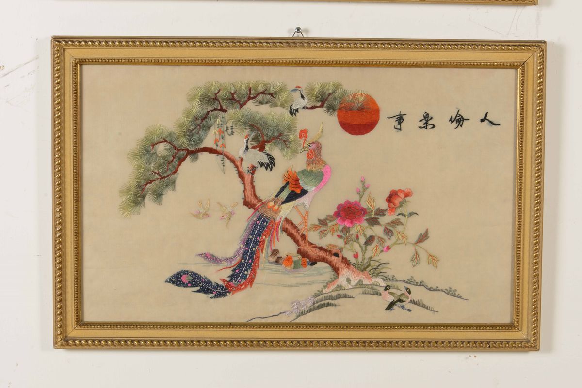 Due ricami su seta. Cina XX secolo