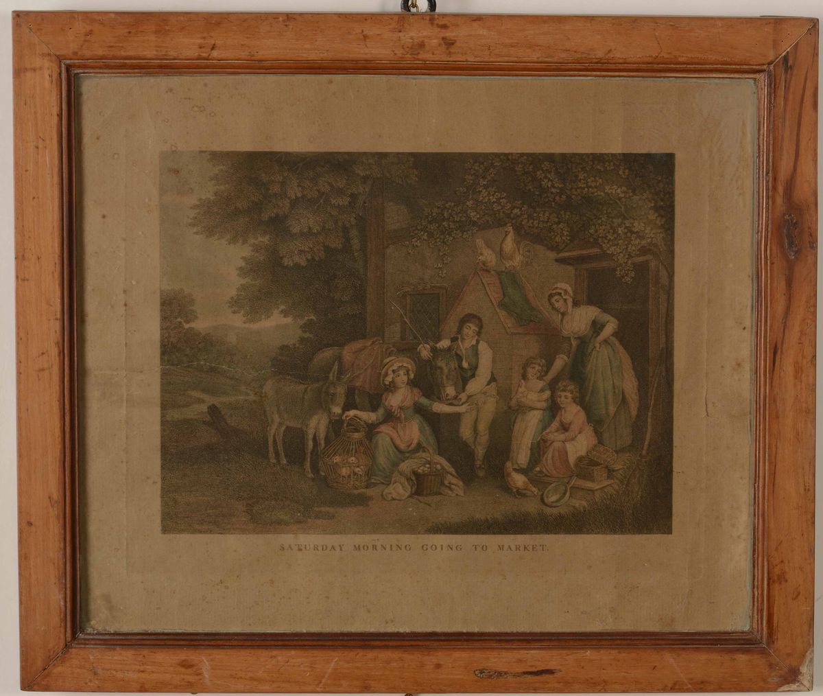 Incisione a colori "Saturday Morning going to Market" da un dipinto di William Redmore Bigg. Fine XVIII secolo
