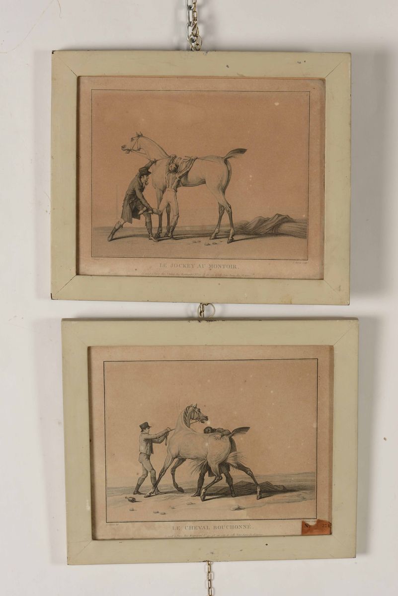 Lotti di cinque stampe raffiguranti cavalli. Francia XIX secolo