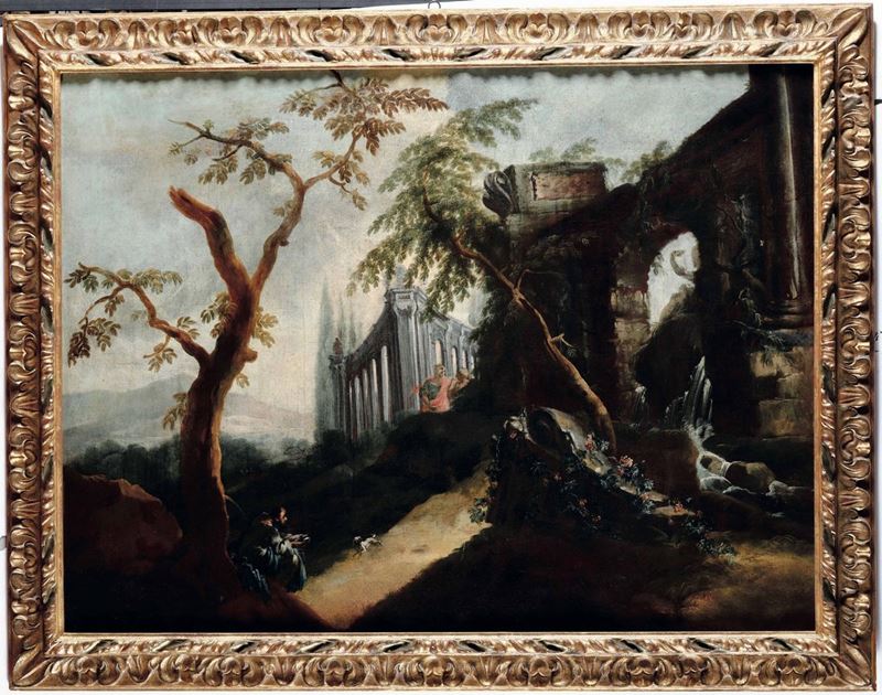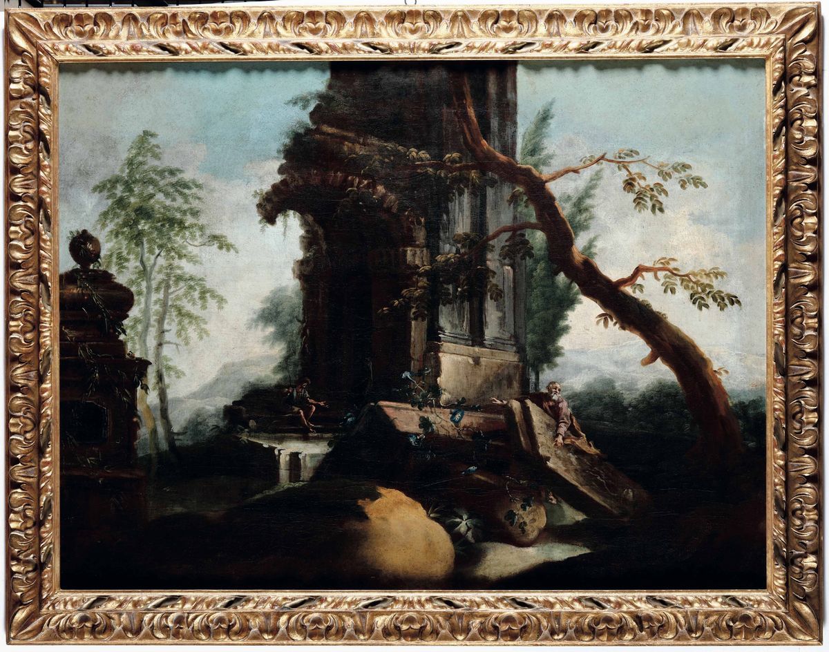 Scuola del XVIII secolo Coppia di paesaggi con architetture