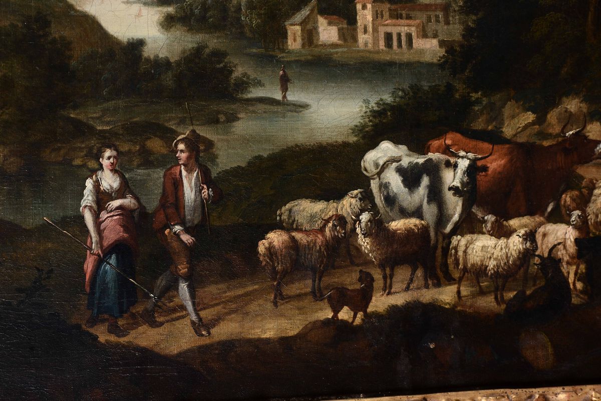 Paesaggio fluviale con pastori, armenti e rovine classiche