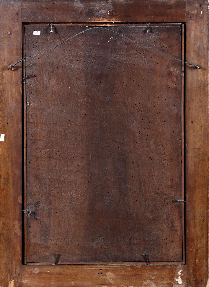 Scuola spagnola del XVII-XVIII secolo Madonna con Bambino entro ghirlanda di fiori