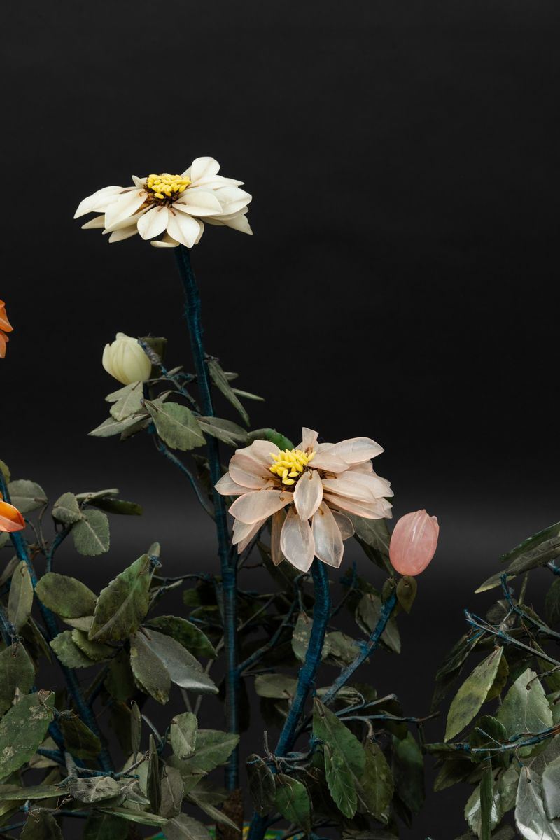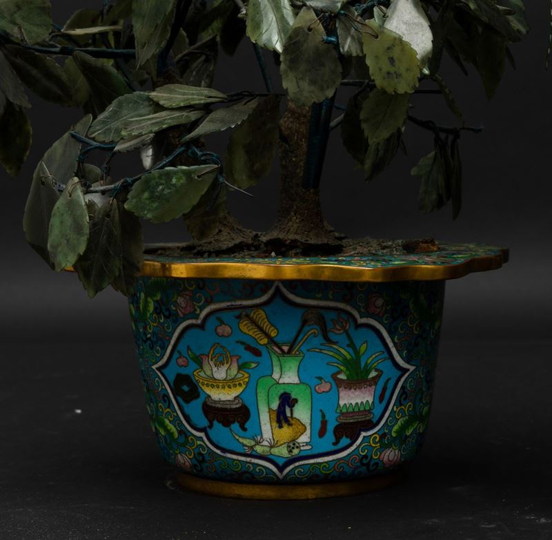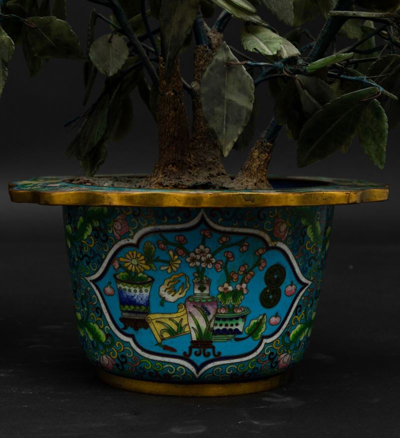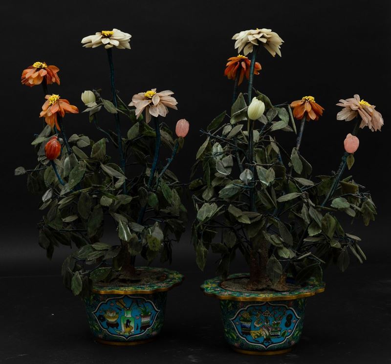 Coppia di vasi cloisonné con fiori in pietre dure, Cina, Dinastia Qing, XIX secolo