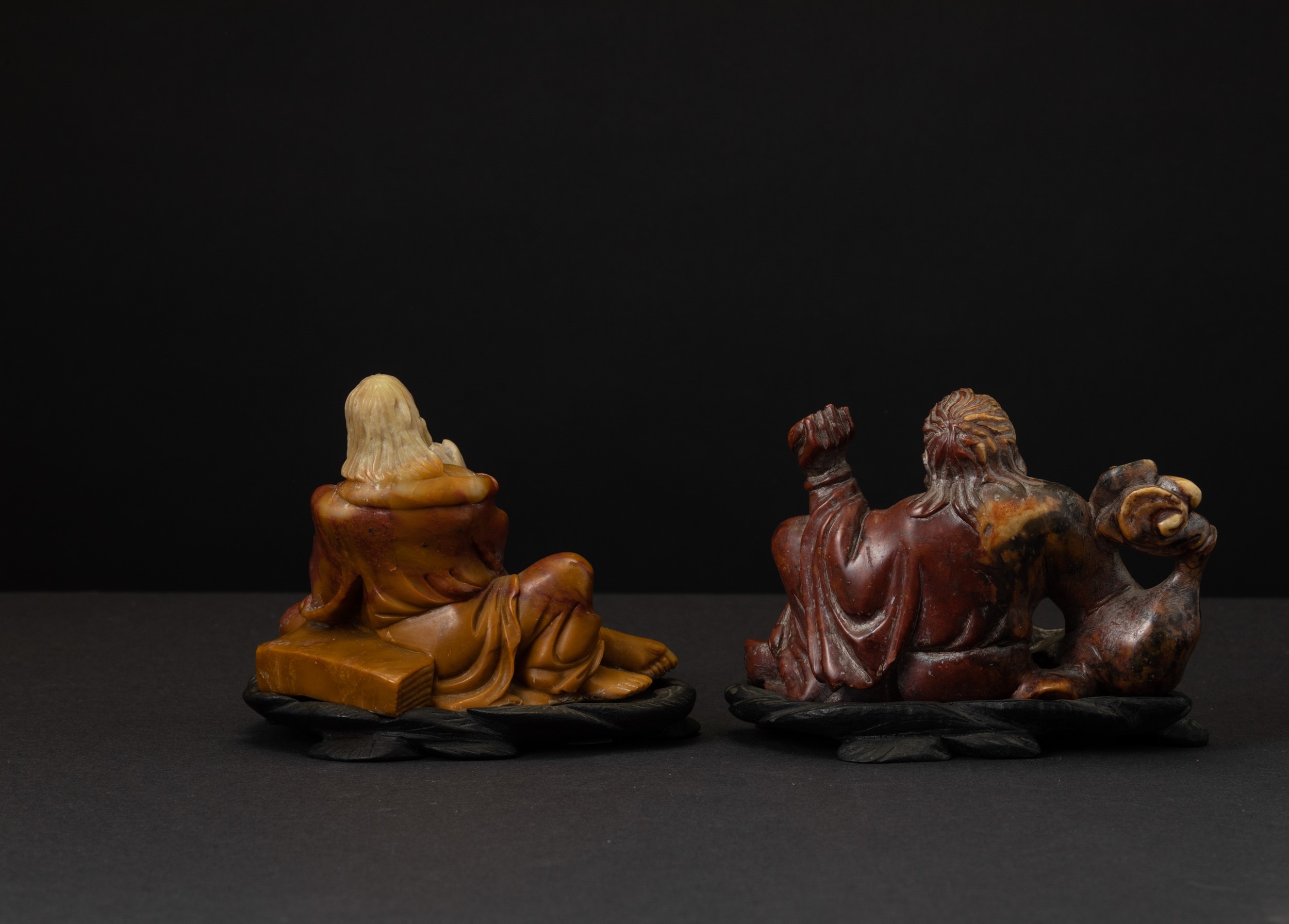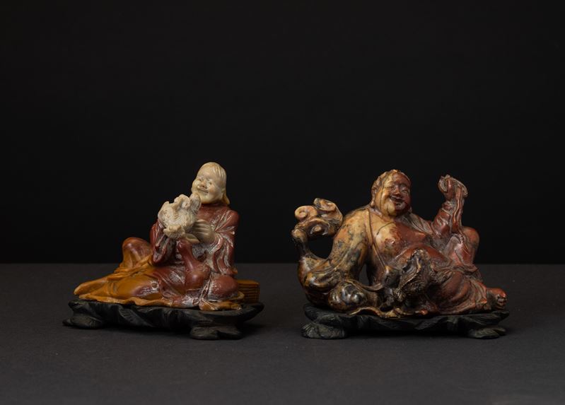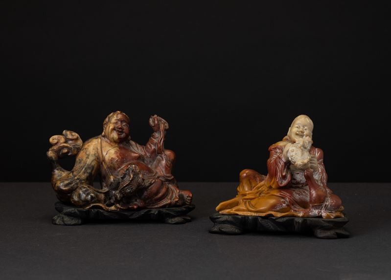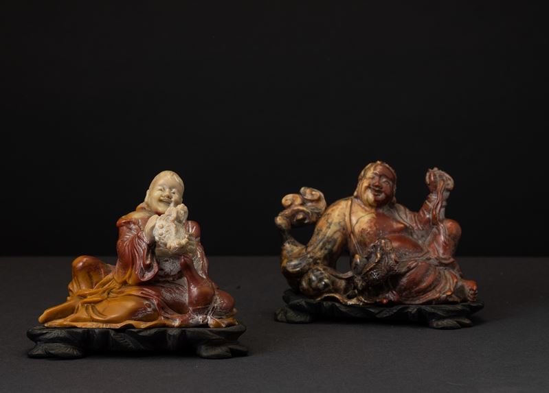 Due figure di Budai scolpite in saponaria, Cina, XX secolo