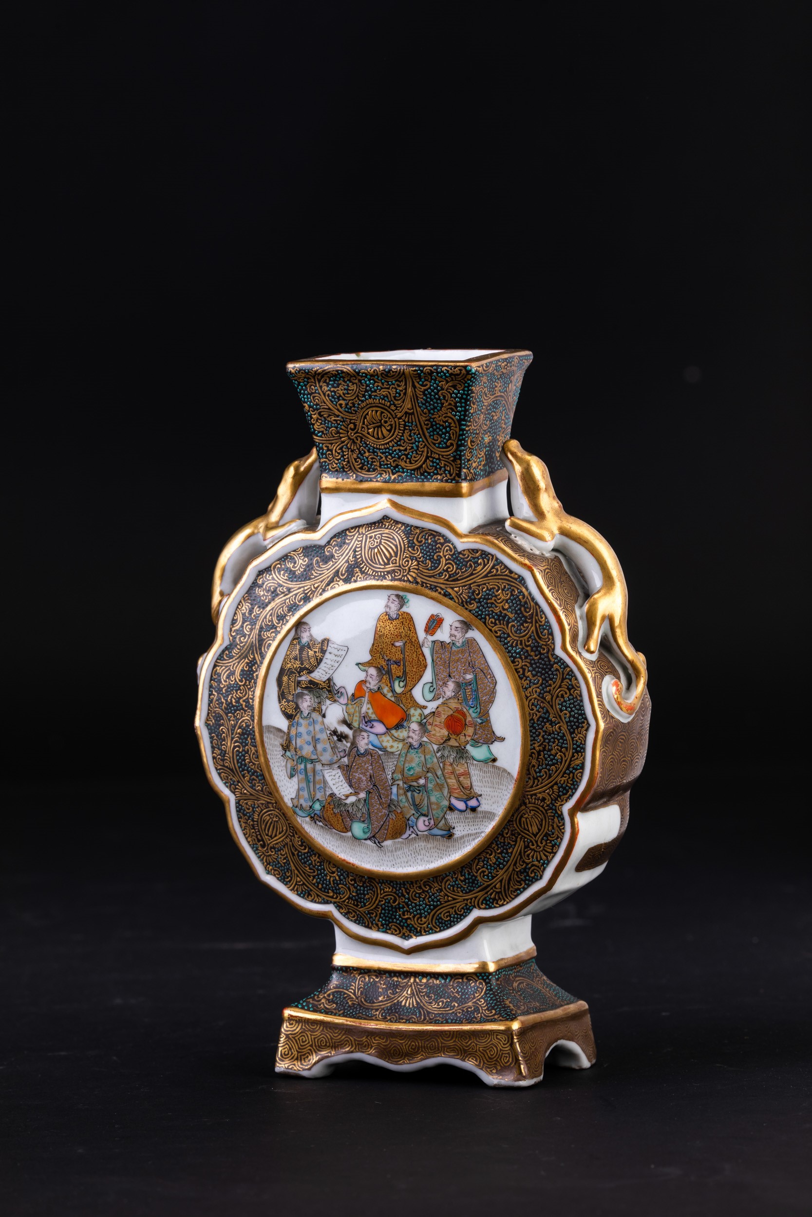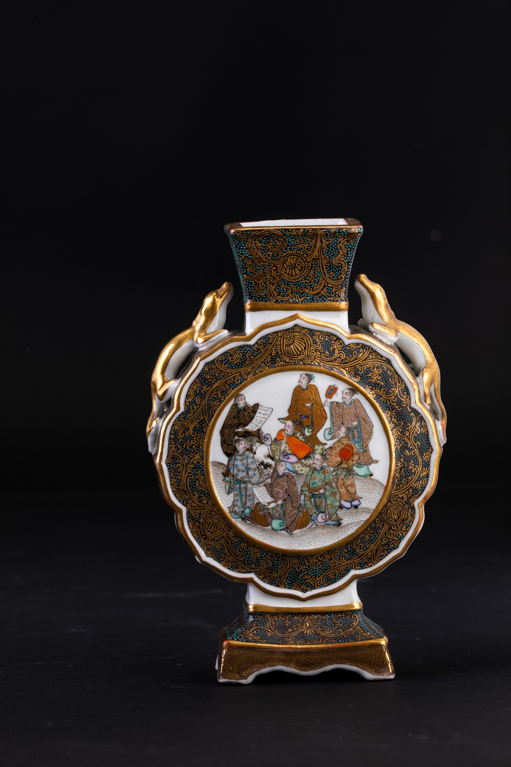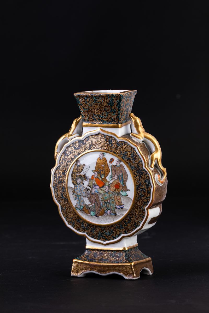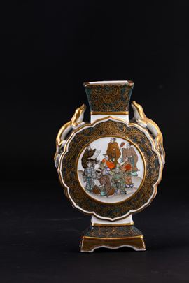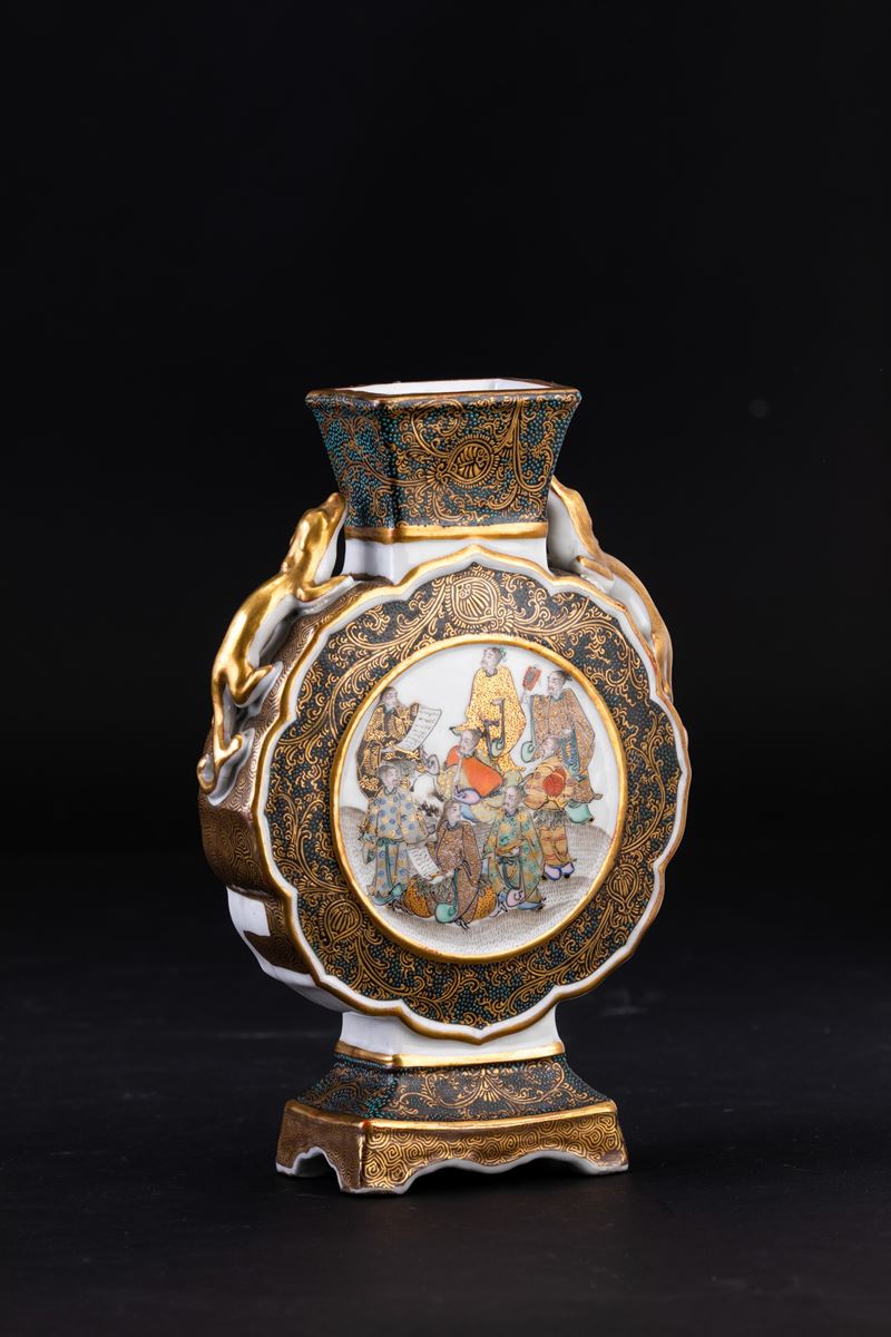 Fiasca in porcellana con figure di draghetti a rilievo e raffigurazione di saggi, Giappne, periodo Meiji (1868-1912)
