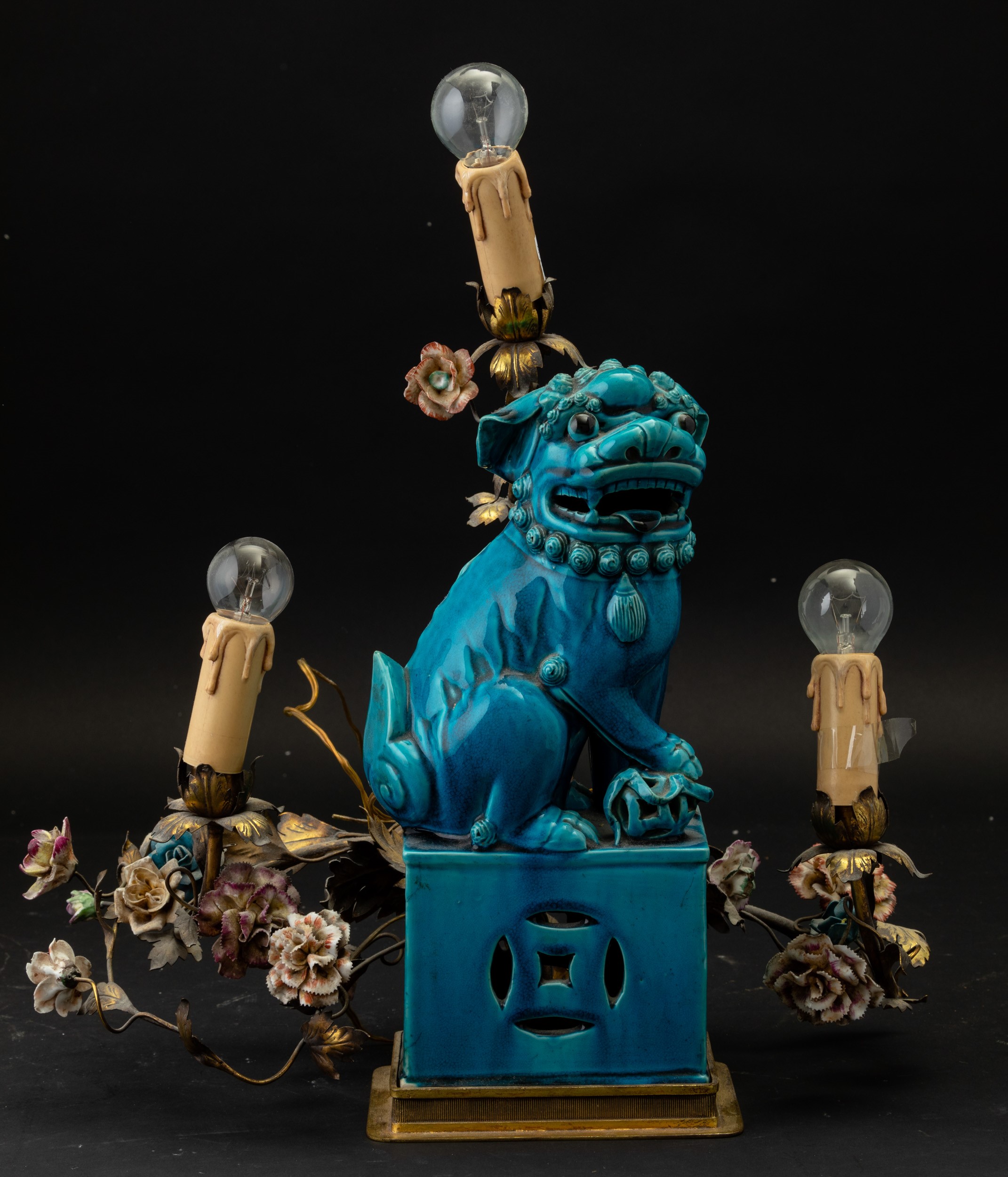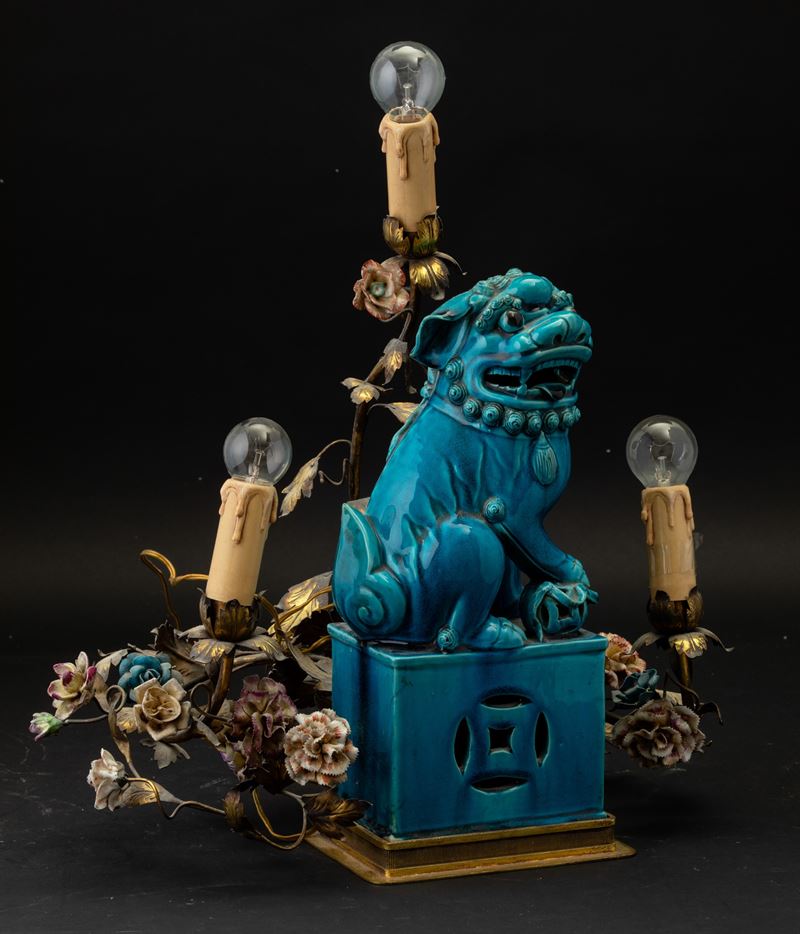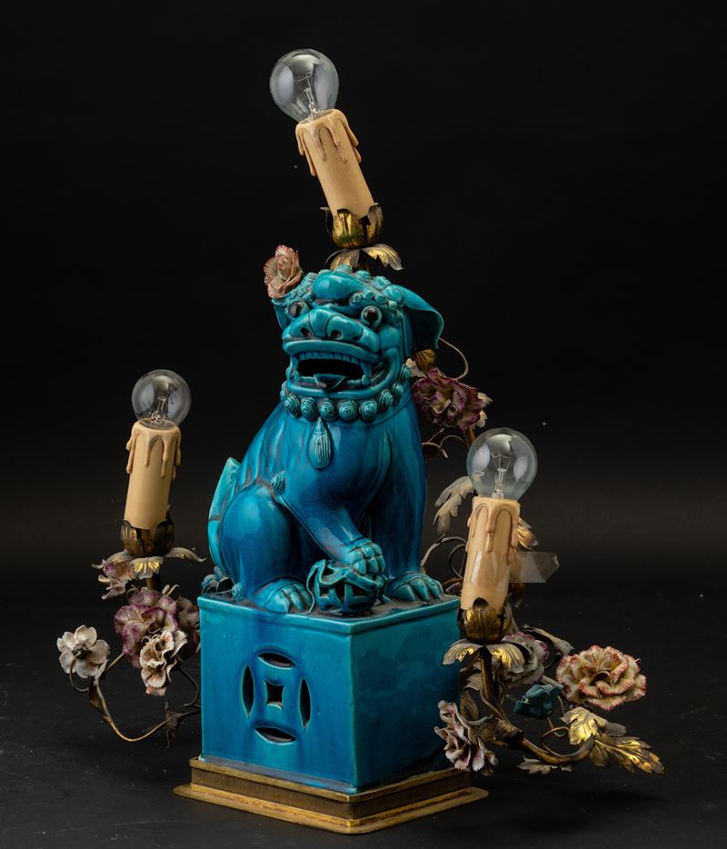 Figura di cane di Pho in terracotta invetriata color turchese, Cina, Dinastia Qing, XIX secolo