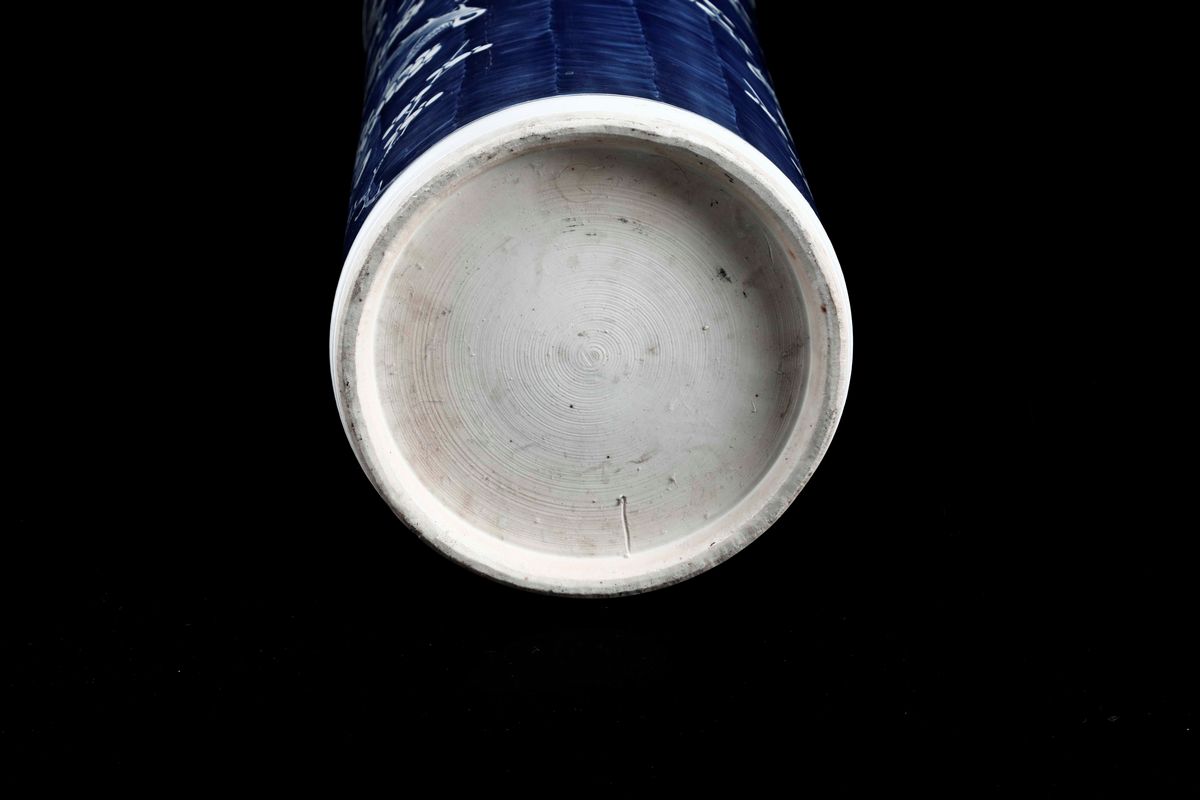 Portaombrelli in porcellana bianca e blu con ramo di ciliegio in fiore, Cina, XX secolo