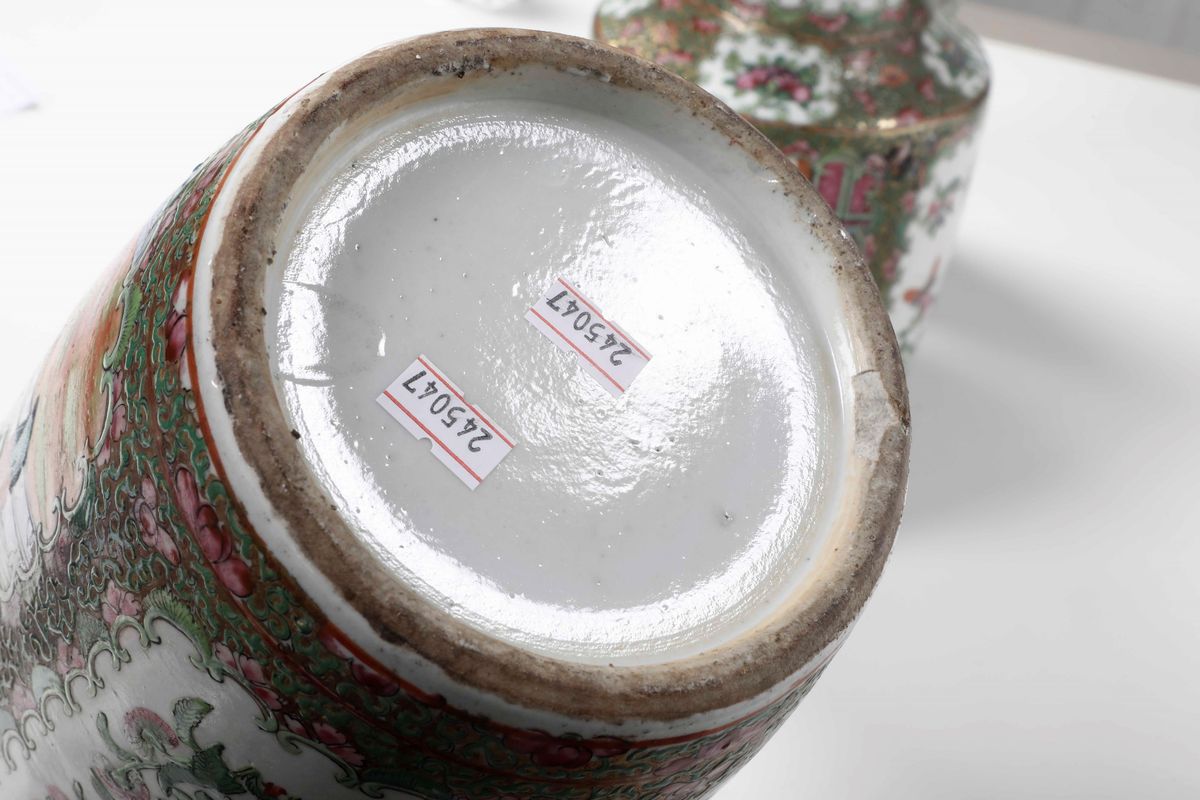 Quattro vasi in porcellana Canton con decori floreali e scene di vita comune entro riserve, Cina, Dinastia Qing, XIX secolo