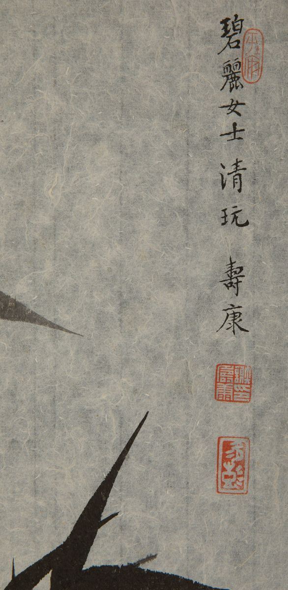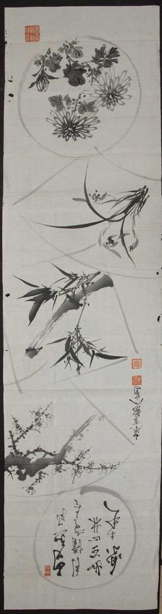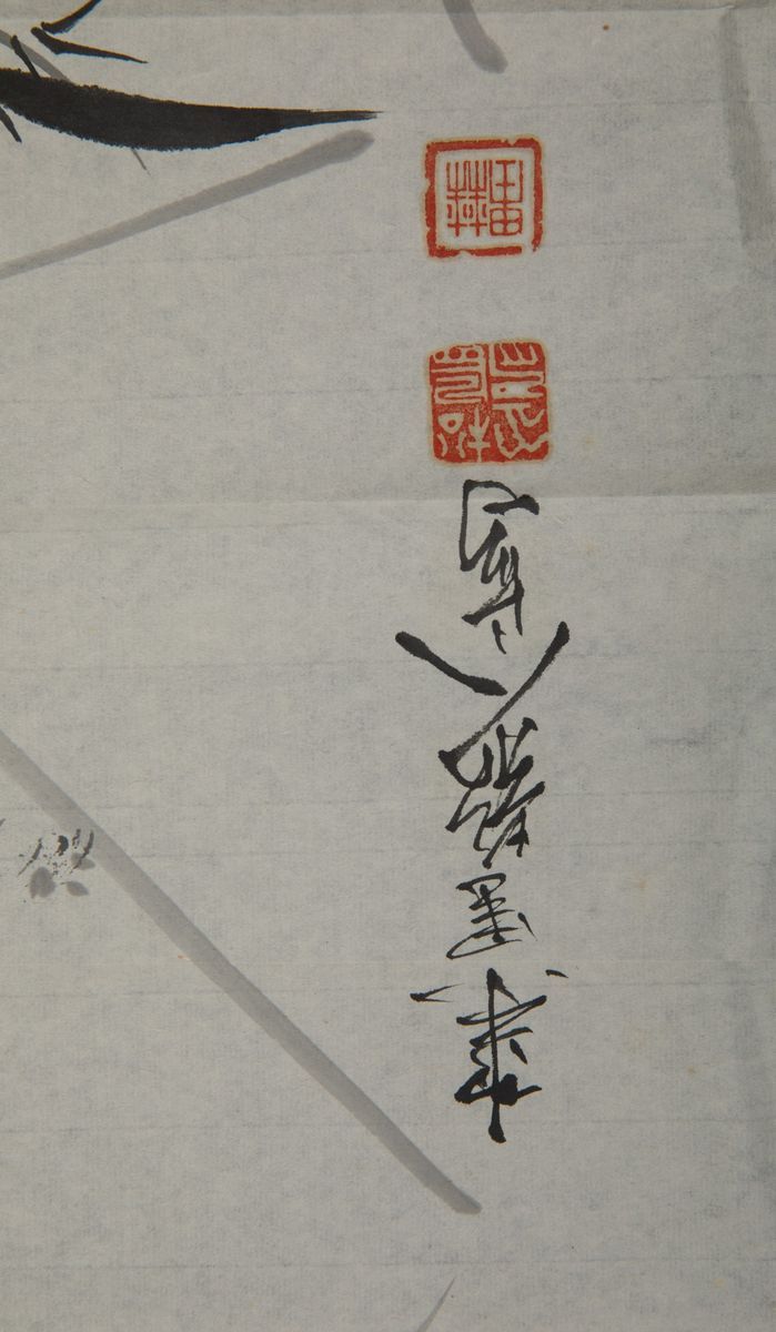 Tre dipinti su carta di vari soggetti con iscrizioni, Cina, XX secolo