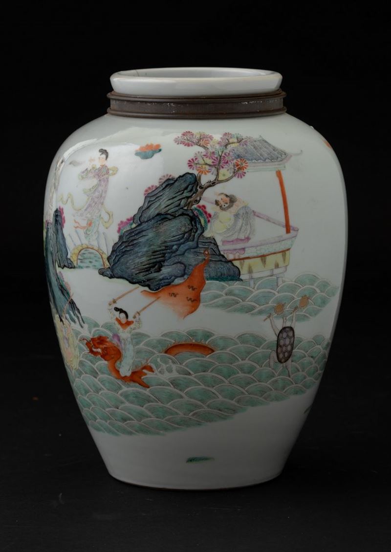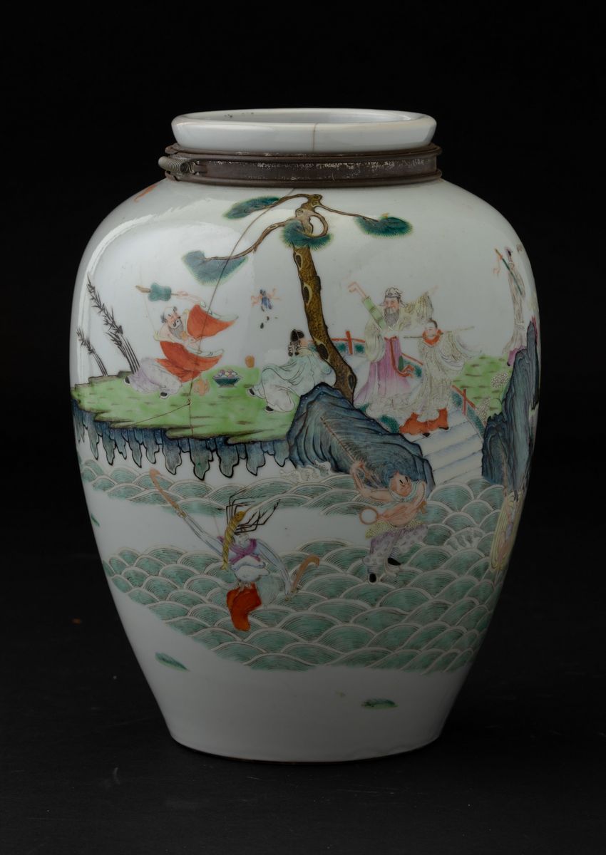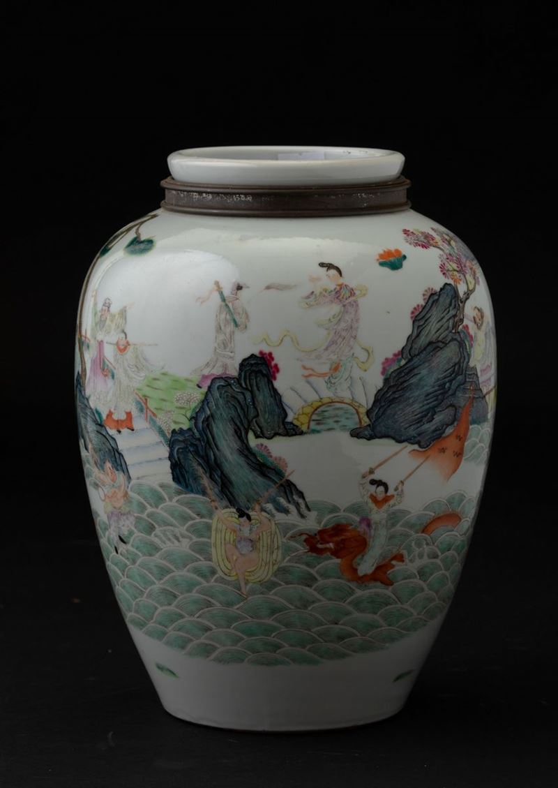 Vaso in porcellana con figure di saggi entro paesaggio, Cina, Dinastia Qing, XIX secolo
