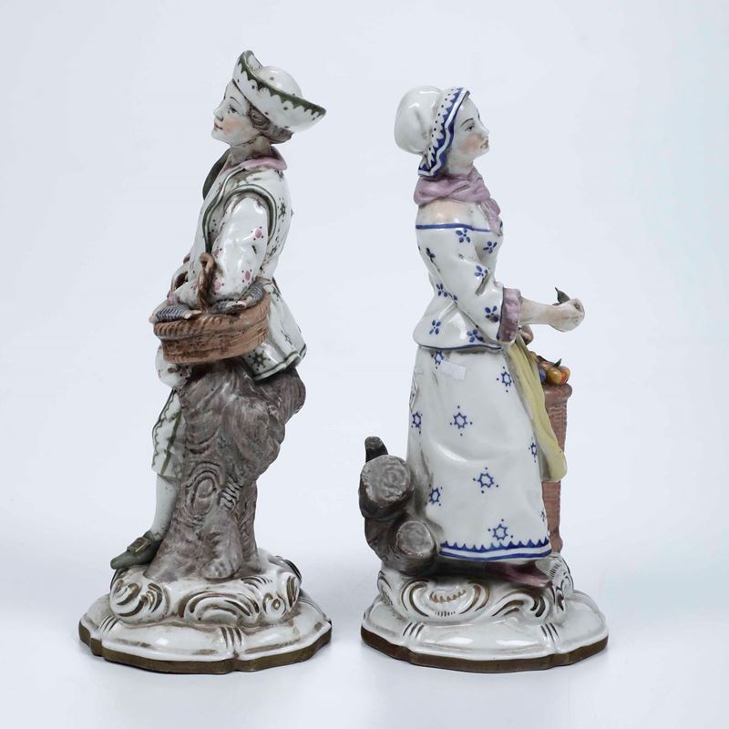 Coppia di figurine di venditori ambulanti, XX secolo